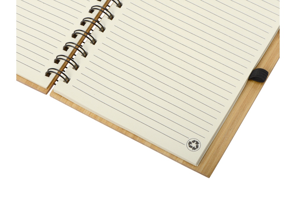 Набор с блокнотом и ручкой изготовлен из экологически чистых натуральных материалов. Обложка блокнота и корпус ручки из натурального бамбука, листы из переработанной бумаги.
