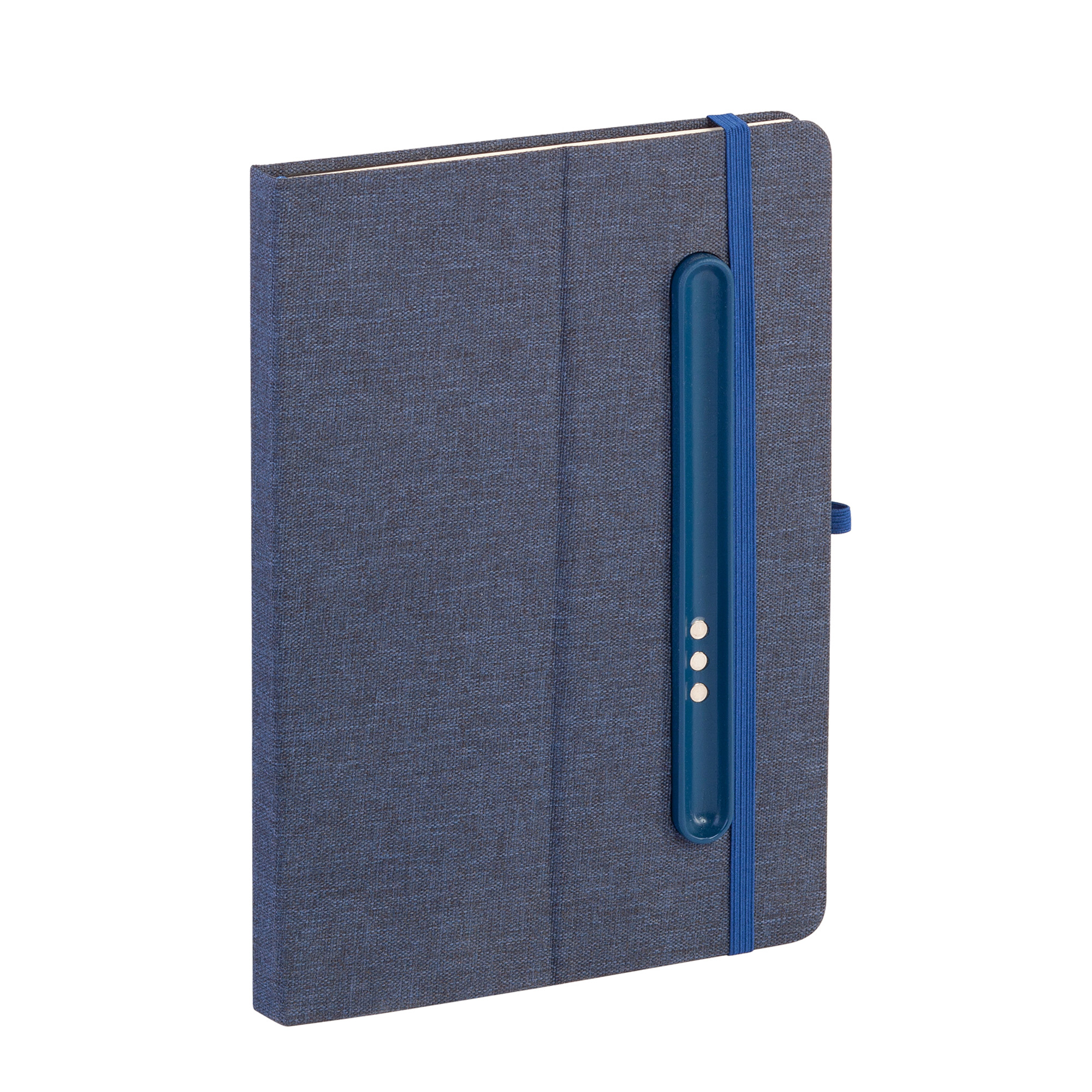 - Блокнот формата А5 с резинкой-фиксатором и встроенным в обложку магнитным держателем для ручки. Внутренний блок состоит из 160 страниц в линейку бумаги плотностью 70 г/м2. Материал обложки изготовлен из переработанного (RPET) пластика. Магниты прочно и надёжно закрепляют металлическую ручку на обложке. Бонус – обложка трансформируется в удобную подставку для смартфона/планшета/ноутбука;