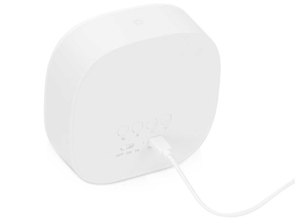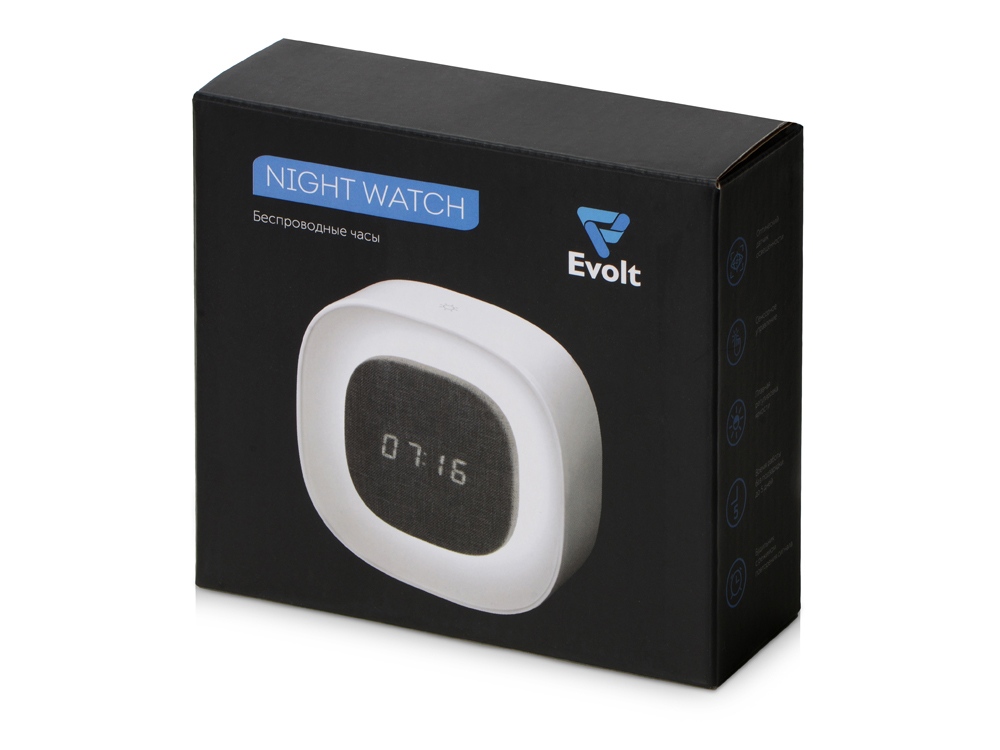 Беспроводные часы с управляемой яркостью подсветки. Для включения подсветки просто прикоснитесь к сенсорной кнопке, расположенной на верхней части «Night Watch» — очень удобно, если это происходит в темноте: достаточно попасть ладонью по центру верхней грани. Длительным нажатием кнопки регулируется яркость подсветки. Цифровой дисплей подстраиваются под степень освещенности комнаты при помощи оптического датчика: ночью, при отсутствии света, дисплей часов светится неярко и не раздражает глаза после пробуждения, а также не мешает сну, при солнечном свете же цифры будут подсвечиваться ярко. Беспроводные часы имеют функцию будильника, режим энергосбережения, а также режим сна, который поможет с комфортным засыпанием: в нем дисплей постепенно гаснет в течение 30 минут. Встроенный аккумулятор на 1200 мАч. Среднее время работы при выключенной подсветке - 6 дней. Время работы при включенной подсветке - 6 часов. - удобная сенсорная кнопка - плавное изменение яркости - «умный» датчик освещенности - будильник - режим энергосбережения - режим сна (постепенное выключение подсветки) - беспроводные: можно взять в поход или в поездку