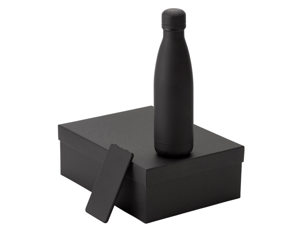повербанк- пластик с покрытием софт-тач, термобутылка- нержавеющая cталь с покрытием софт-тач