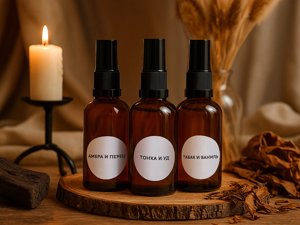 Набор ароматов для дома "Trinity" Создайте атмосферу уюта и изысканности с набором ароматов для дома. Каждый спрей заключён в стильную стеклянную ёмкость и подарит вашему пространству уникальное настроение: Амбра Перец – тёплый и пряный аромат с глубиной амбры и пикантной нотой перца, который окутывает дом чувственностью и энергией. Тонка Уд – загадочный и утончённый аромат, где сладкая теплота тонка-боба встречается с благородным удом, создавая атмосферу роскоши и гармонии. Табак Ваниль – уютная композиция с мягкой сладостью ванили и тёплой дымностью табака, которая делает дом особенно комфортным и притягательным. Эти ароматы идеально подходят для ежедневного использования и подарят любому пространству неповторимый шарм. Стеклянные флаконы добавляют набору элегантности и долговечности, а спрей позволяет равномерно распределять аромат, создавая идеальную атмосферу в любом помещении. Емкость каждого спрея - 50 мл.