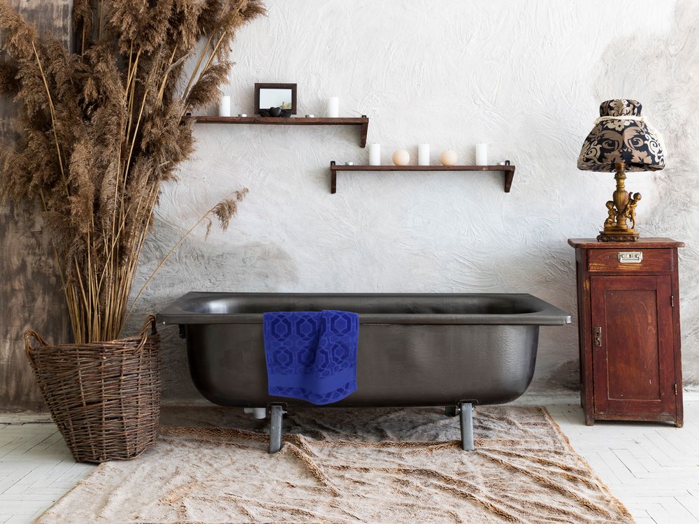 Полотенце Velin, большое, синее 70х130 см, ширина бюрдюра 8 см; в сложении: 34x32x4 см