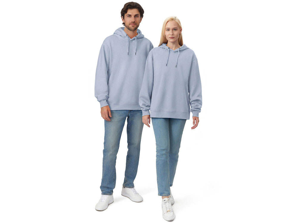 Толстовка с капюшоном из мягкого флиса из смеси хлопка и полиэстера. Модель комфортной и актуальной посадки оверсайз отлично подходит для обычной жизни и в качестве промо мерча. - оверсайз посадка - удобный капюшон на подкладке -мягкое и уютное полотно из смеси хлопка и полиэстеры - Низ и рукава обработаны манжетами из риба 2х2 и дополнительно отстрочены для укрепления - увеличенная зона для нанесения из-за отсутствия кармана
