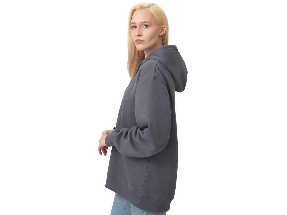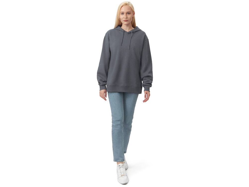 Толстовка с капюшоном из мягкого флиса из смеси хлопка и полиэстера. Модель комфортной и актуальной посадки оверсайз отлично подходит для обычной жизни и в качестве промо мерча. - оверсайз посадка - удобный капюшон на подкладке -мягкое и уютное полотно из смеси хлопка и полиэстеры - Низ и рукава обработаны манжетами из риба 2х2 и дополнительно отстрочены для укрепления - увеличенная зона для нанесения из-за отсутствия кармана