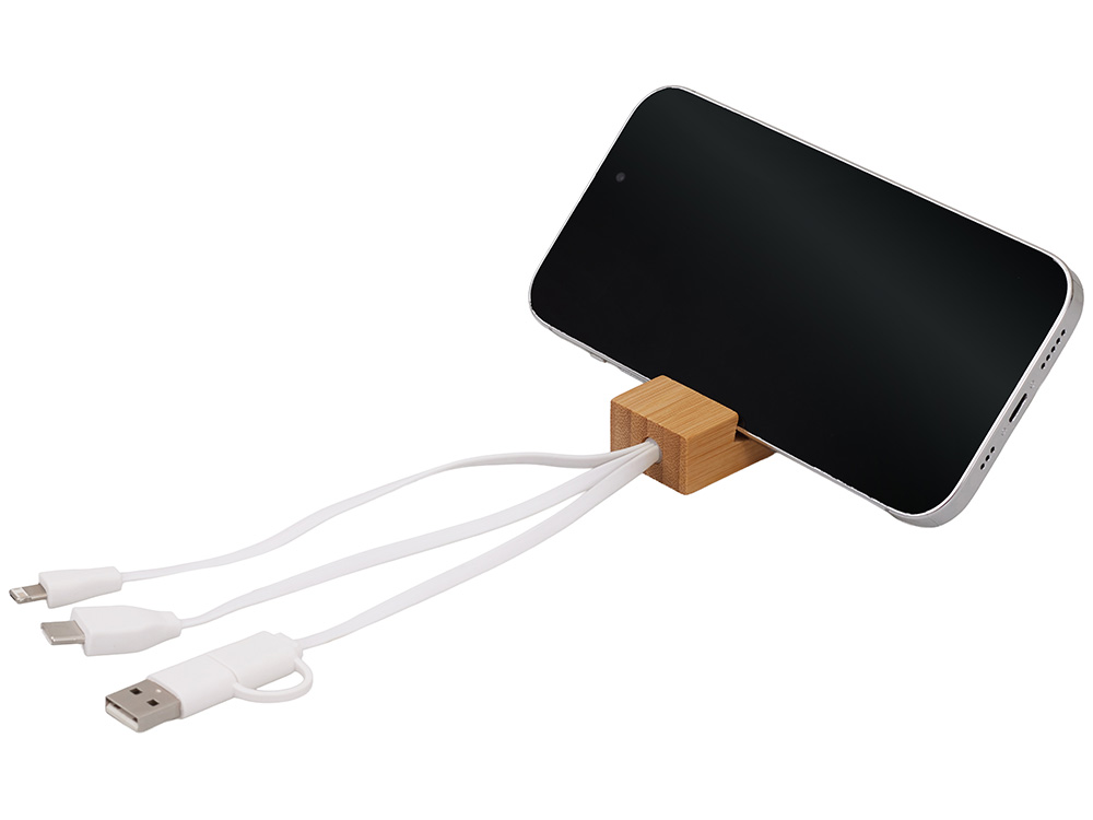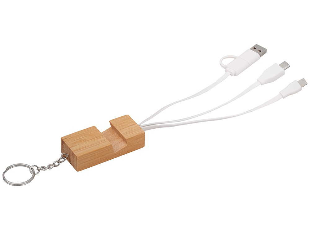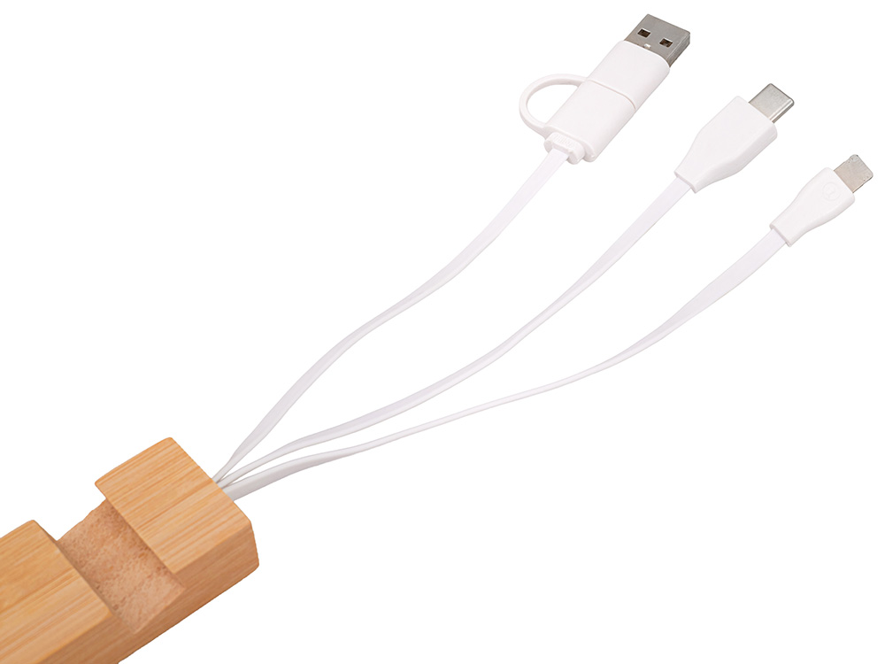 Универсальный кабель с подставкой 4-в-1 «Unicable» — стильное и практичное решение для современного пользователя. Этот компактный аксессуар станет незаменимым спутником в вашем кармане, сумке или на рабочем столе. Поставляется в фирменной коробке bamboo collection. Оснащён четырьмя разъёмами: • Входными разъемами USB-A и USB-C — для подключения к компьютеру, блоку питания или зарядному устройству. • USB-C — совместим с современными смартфонами, планшетами и ноутбуками. • Lightning — для некоторых устройств Apple (iPhone, iPad). Экологичный и стильный корпус из дерева Корпус кабеля выполнен из натурального бамбука — экологически чистого и прочного материала. Деревянная подставка не только защищает кабель от перегибов, но и служит удобной опорой для телефона при видеозвонках, прослушивании музыки или просмотре видео. Ключница с кольцом — всегда под рукой Специальное металлическое кольцо позволяет легко прикрепить «Unicable» к ключам, рюкзаку или сумке. Благодаря этому вы никогда не потеряете свой кабель — он будет всегда рядом, когда понадобится.
