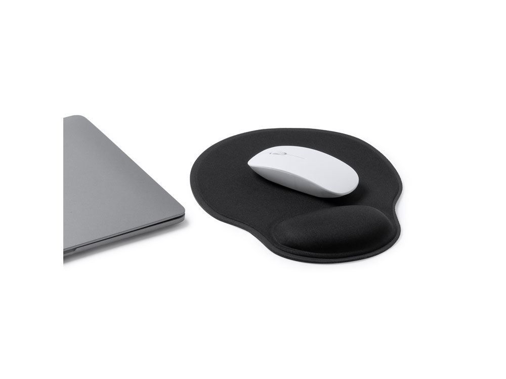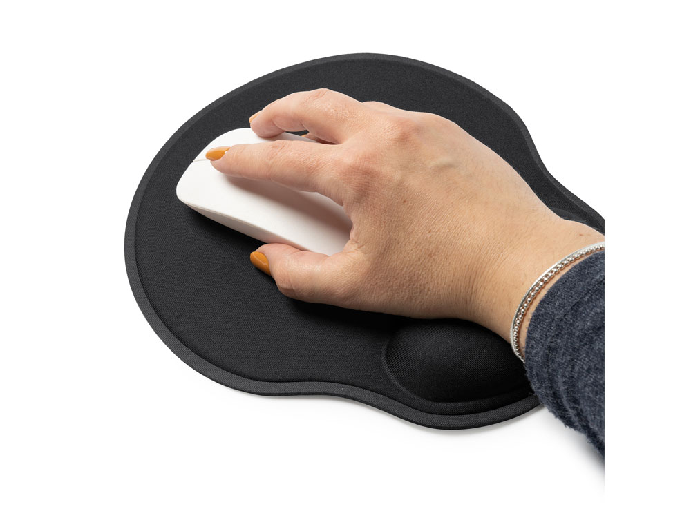 Коврик для мыши из мягкого полиэстера с мягкой опорой для запястий. Резиновое нескользящее основание. Конструкция этого коврика позволяет отдыхать запястьям во время работы.