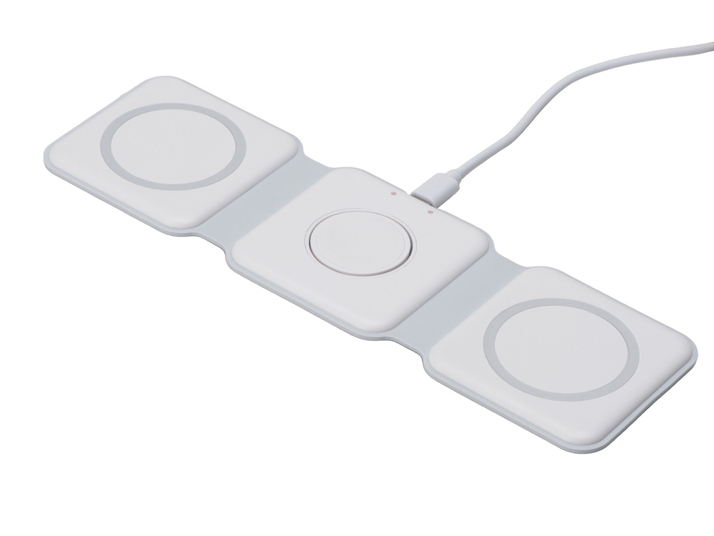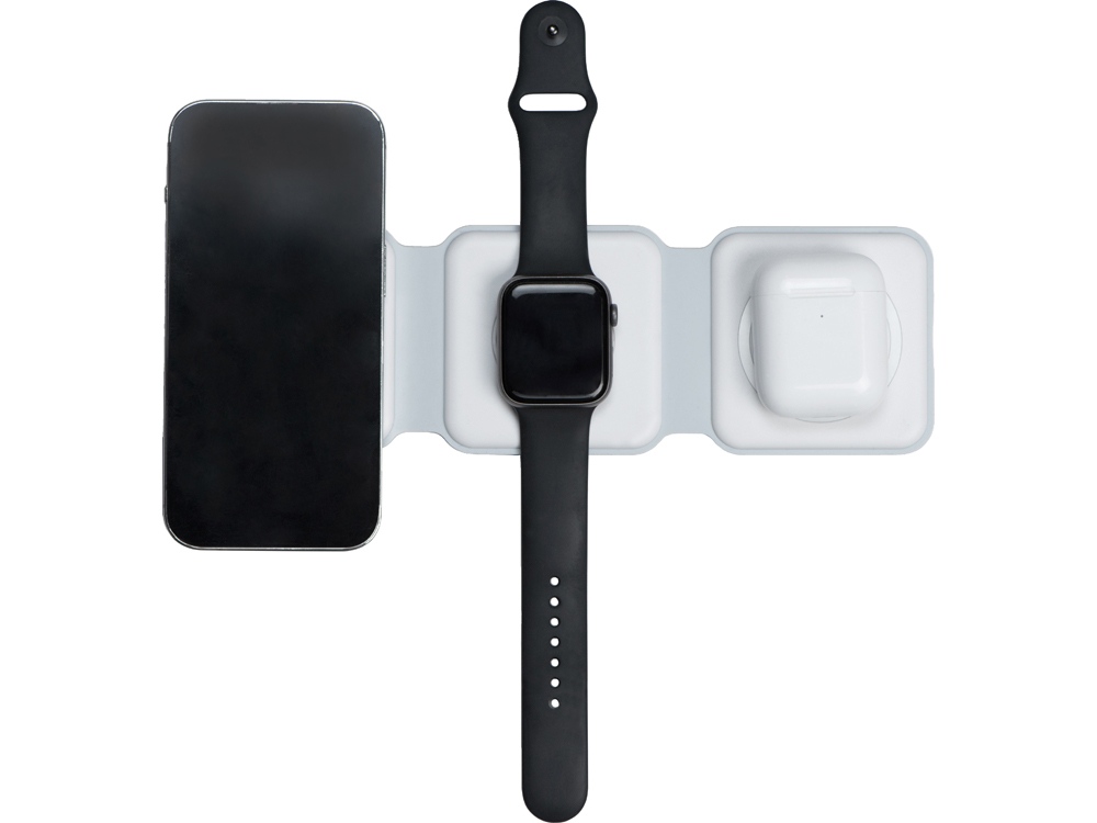 Беспроводная зарядная станция 3 в 1 — это современное решение для быстрой и удобной зарядки ваших устройств. Эта компактная и практичная модель позволяет заряжать сразу три устройства одновременно- любой смартфона и наушники с поддержкой беспроводной зарядки по протоколу Qi, и часы Apple. - Мощность до 15 Вт: При подключении к сетевому адаптеру 18 Вт - Складная конструкция: Удобная складная форма делает станцию портативной и легко транспортабельной. Вы можете взять ее с собой в поездки или хранить в небольшом пространстве без проблем - Поддержка MagSafe: Совместимость с технологией MagSafe обеспечивает надежное магнитное прикрепление и оптимальную передачу энергии для устройств Apple, таких как iPhone, AirPods и Apple Watch - Элегантный дизайн: Простой и минималистичный внешний вид станции гармонично впишется в любой интерьер или рабочее пространство.