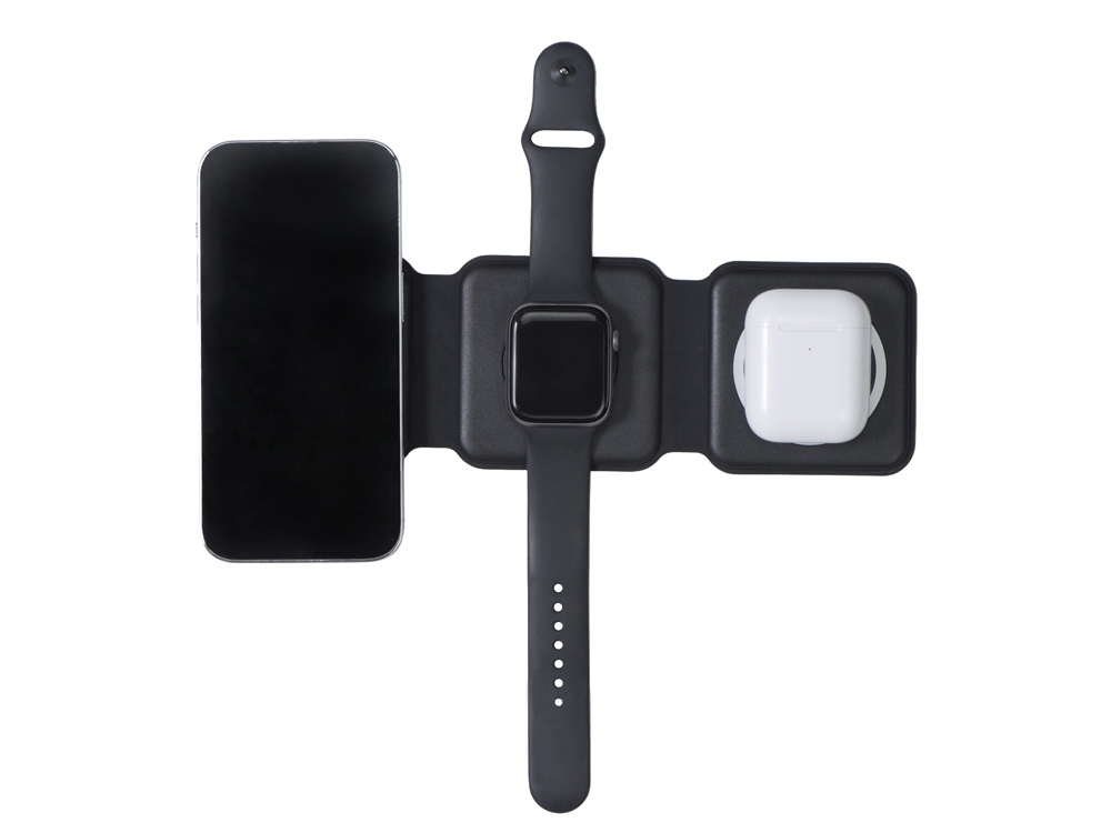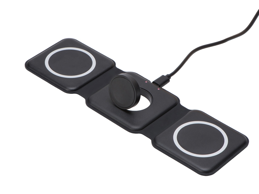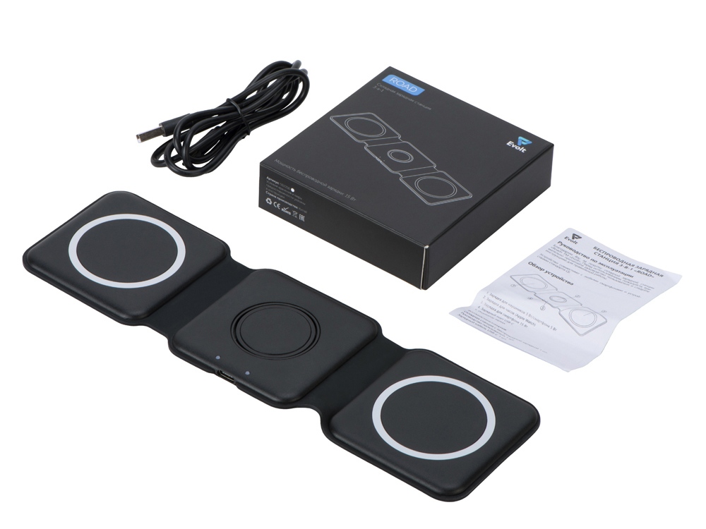Беспроводная зарядная станция 3 в 1 — это современное решение для быстрой и удобной зарядки ваших устройств. Эта компактная и практичная модель позволяет заряжать сразу три устройства одновременно- любой смартфона и наушники с поддержкой беспроводной зарядки по протоколу Qi, и часы Apple. - Мощность до 15 Вт: При подключении к сетевому адаптеру 18 Вт - Складная конструкция: Удобная складная форма делает станцию портативной и легко транспортабельной. Вы можете взять ее с собой в поездки или хранить в небольшом пространстве без проблем - Поддержка MagSafe: Совместимость с технологией MagSafe обеспечивает надежное магнитное прикрепление и оптимальную передачу энергии для устройств Apple, таких как iPhone, AirPods и Apple Watch - Элегантный дизайн: Простой и минималистичный внешний вид станции гармонично впишется в любой интерьер или рабочее пространство.
