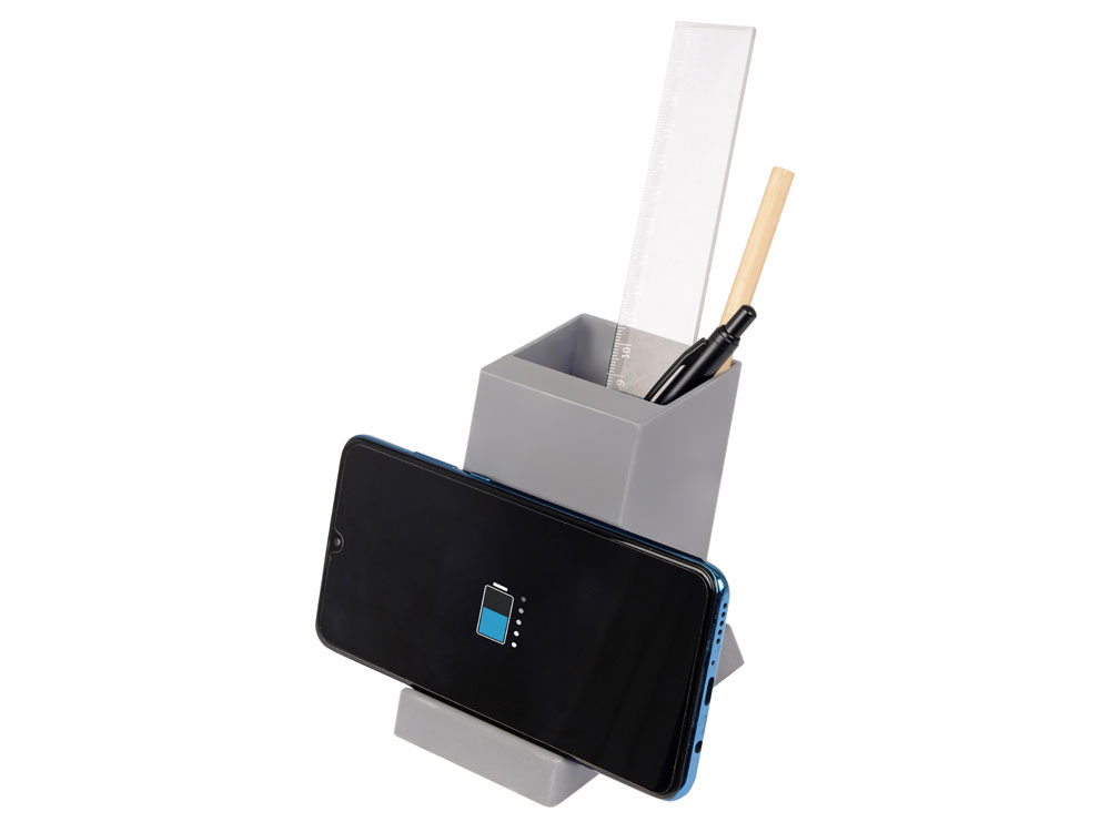 Настольное зарядное устройство Glow Box - современная технологичная альтернатива классическим подставкам для канцелярии. Имеет отсек для канцелярских принадлежностей, внешний разъем USB и встроенную беспроводную зарядку. Телефон для подзарядки можно расположить как горизонтально, так и вертикально - удобно смотреть видео и фото, не снимая устройство с зарядки. Выполнено из пластика с покрытием soft-touch. Будет стильно смотреться на любом рабочем столе. Устройство имеет многофункциональную защиту от скачков напряжения и коротких замыканий.