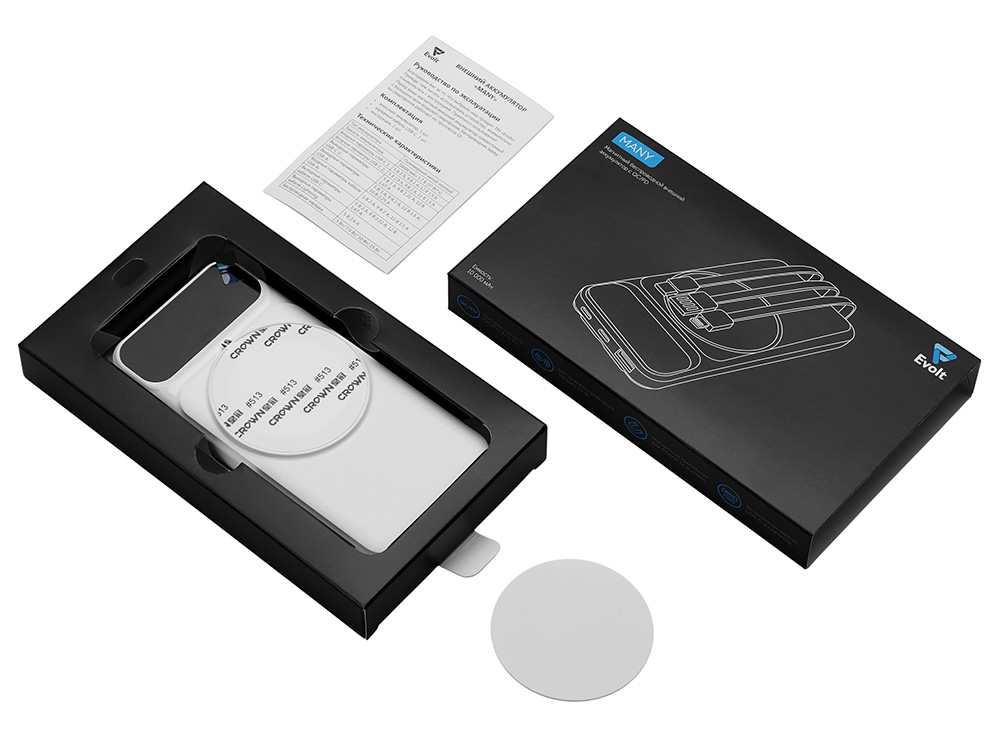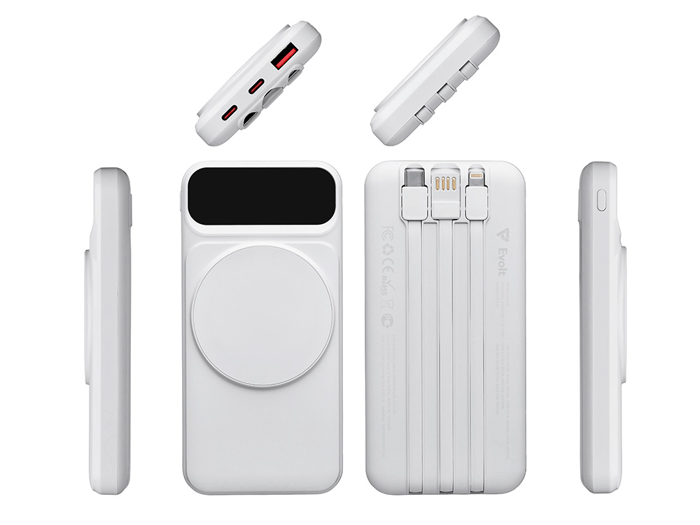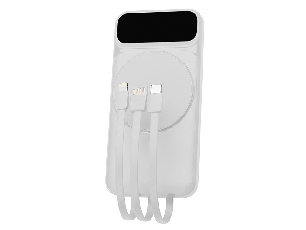 Функциональный и удобный внешний аккумулятор на 10 000 мАч обеспечивает быструю зарядку как по кабелям, так и беспроводным способом, поддерживая современные стандарты скорости. Цифровой дисплей на верхней панели мгновенно показывает точный уровень заряда, а встроенные кабели Lightning, USB-C и входной USB-A устраняют необходимость в дополнительных проводах — всё, что нужно для каждодневного использования, уже есть в самом гаджете. Компактные габариты, сопоставимые с размером смартфона, делают устройство идеальным для путешествий и повседневного использования. Сильные магниты гарантируют надёжное крепление при беспроводной зарядке. В комплекте есть силиконовая накладка: перед использованием удалите защитный стикер и прикрепите её к корпусу. - Встроенные кабели (Lightning, USB-C, USB-A) — не нужно искать дополнительные кабели: зарядка других устройств и подзарядка аккумулятора происходят через встроенные кабели. - Сильные магниты - Цифровой дисплей уровня заряда и статуса зарядки - Функции быстрой проводной до 22.5 Вт и беспроводной зарядки до 15 Вт - Упаковка с удобным и быстрым открытием