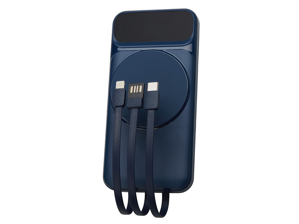 Функциональный и удобный внешний аккумулятор на 10 000 мАч обеспечивает быструю зарядку как по кабелям, так и беспроводным способом, поддерживая современные стандарты скорости. Цифровой дисплей на верхней панели мгновенно показывает точный уровень заряда, а встроенные кабели Lightning, USB-C и входной USB-A устраняют необходимость в дополнительных проводах — всё, что нужно для каждодневного использования, уже есть в самом гаджете. Компактные габариты, сопоставимые с размером смартфона, делают устройство идеальным для путешествий и повседневного использования. Сильные магниты гарантируют надёжное крепление при беспроводной зарядке. В комплекте есть силиконовая накладка: перед использованием удалите защитный стикер и прикрепите её к корпусу. - Встроенные кабели (Lightning, USB-C, USB-A) — не нужно искать дополнительные кабели: зарядка других устройств и подзарядка аккумулятора происходят через встроенные кабели. - Сильные магниты - Цифровой дисплей уровня заряда и статуса зарядки - Функции быстрой проводной до 22.5 Вт и беспроводной зарядки до 15 Вт - Упаковка с удобным и быстрым открытием