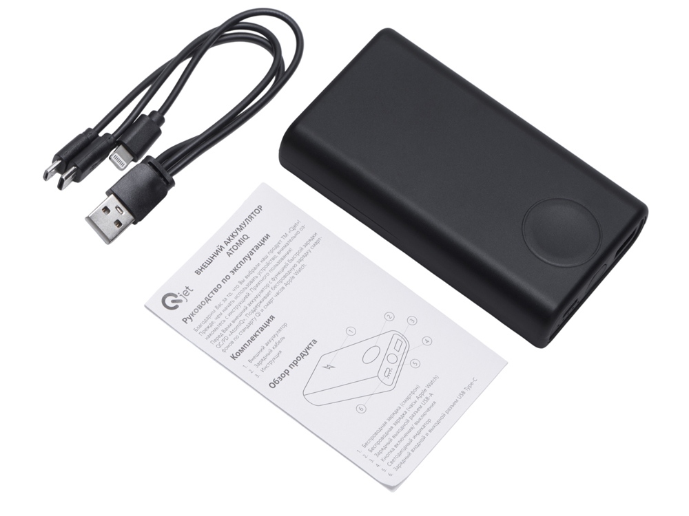 Компактный внешний аккумулятор «AtomIQ» – это идеальное решение для тех, кто ценит удобство и многофункциональность. Благодаря большой плоской поверхности повербанк отлично подходит для нанесения персонализированных цветных УФ-изображений, что позволяет создать уникальный аксессуар, отражающий вашу индивидуальность. Ёмкость аккумулятора 10000 мАч обеспечивает надёжное питание для нескольких ваших устройств, а продуманная конструкция позволяет заряжать одновременно смартфон и Apple Watch, экономя ваше время. • Компактный размер и стильный дизайн: легко помещается в сумку или карман, при этом обладает большой зоной для персонализации с помощью цветных УФ-изображений. • Функция быстрой зарядки QC/PD: порты USB-A и USB-C поддерживают технологии Quick Charge и Power Delivery, гарантируя высокую скорость зарядки совместимых устройств. • Беспроводная зарядка Apple Watch: специальная функция для владельцев умных часов Apple Watch, обеспечивающая удобную беспроводную зарядку без лишних проводов. • Одновременная зарядка: возможность заряжать сразу два устройства – ваш смартфон через кабель или беспроводную зарядку и Apple Watch. • Кабель быстрой зарядки в комплекте: повербанк поставляется с фирменным кабелем, поддерживающим быструю зарядку, что делает использование максимально удобным. «AtomIQ» – это не просто повербанк, а универсальный инструмент, который всегда готов поддержать ваши гаджеты в течение дня!