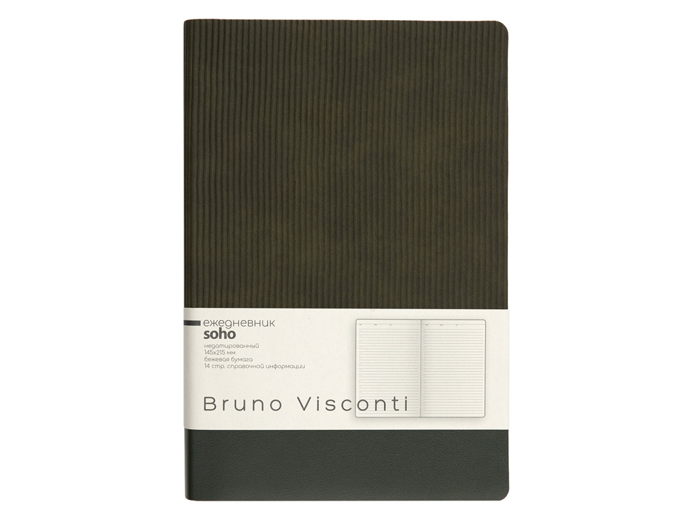 Гибкая мягкая обложка с эффектом муара, тактильно приятная с рифленой фактурой – главное украшение недатированного ежедневника Soho ТМ Bruno Visconti. Ляссе в цвет обложки как легкое дополнение к строгому, но элегантному образу. Никаких дополнительных деталей, а сколько благородства. Ежедневник формата А5 имеет внутренний блок из 272 страниц. Блок изготовлен из бежевой бумаги плотностью 70 г/м2 и содержит: Покрытие soft touch придает обложке мягкость и создает приятные тактильные ощущения в работе с ежедневником. • раздел для планирования с линовкой и указанием времени с интервалом в один час; • страница для персональных данных; • страницы для планирования рабочих и личных дел по месяцам; • 10 страниц оригинальной справочной информации (вино и еда, мода, драгоценности, как выбирать подарок, методы борьбы со стрессом).