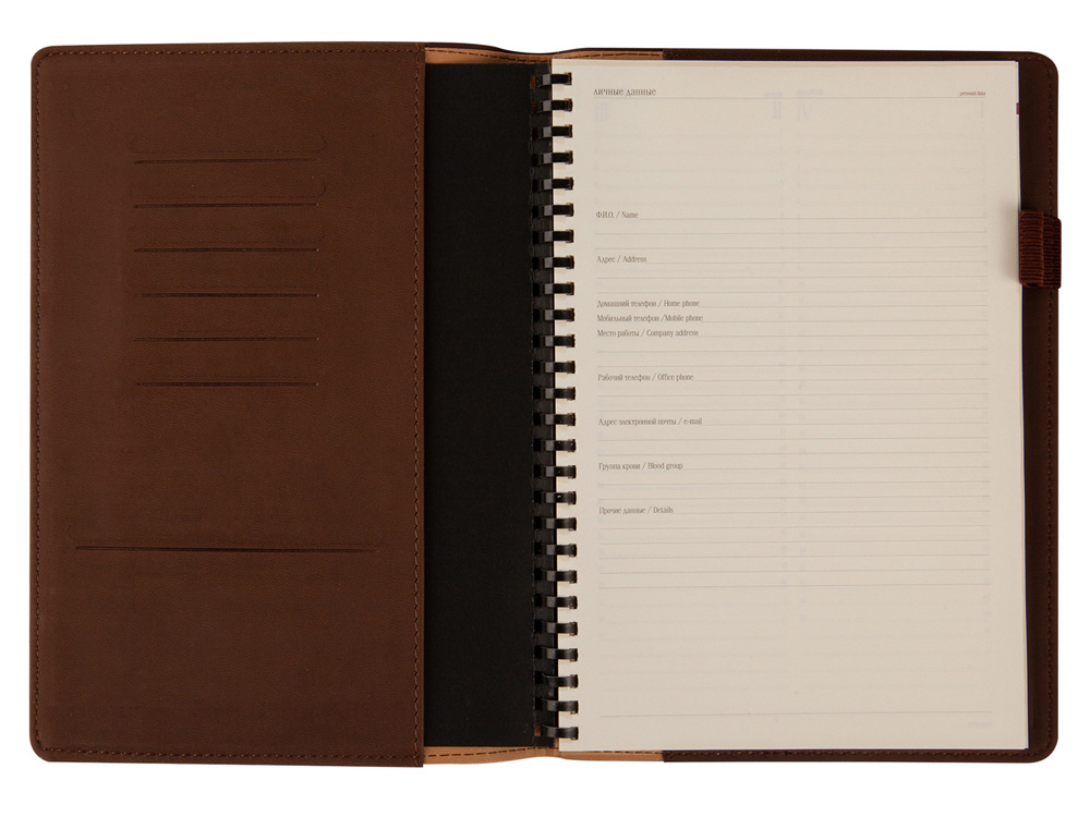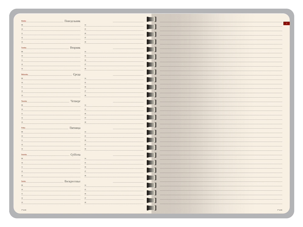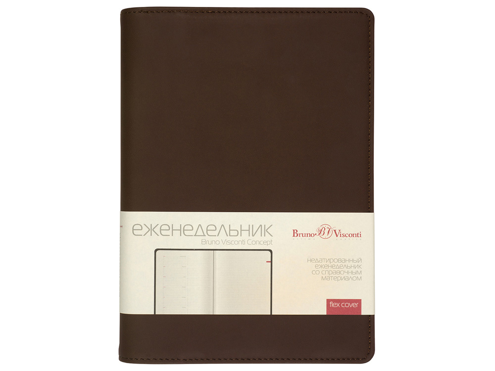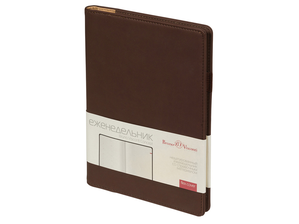 Деловые еженедельники Concept - это воплощение современного дизайна, в котором сочетаются практичные детали. Благодаря удобному формату slim-pocket еженедельник легко помещается в сумку. Еженедельник Concept в классической серой обложке формата А5. Практичный, привлекательный и приятный на ощупь материал обложки на протяжении всего срока службы сохраняет презентабельный вид. Уголки обложки имеют закругленную форму, по всему периметру сделана прострочка нитками в тон. Недатированный блок состоит из 128 страниц, укреплённых на пластиковом полускрытом гребне. На 21 странице размещена справочная информация на русском языке. День недели указан на русском и английском языках. Блок является сменным и вставляется внутрь обложки. С внутренней стороны обложка имеет вырубные отделения для визиток и кредитных карт, а также петлю для ручки на резинке. Для хранения чеков, записок и бумаг внутри расположен прозрачный пластиковый конверт.