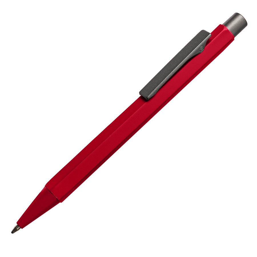Стильная металлическая ручка матового цвета выглядит презентабельно и солидно. Вес достаточно тяжелый. Корпус ручки имеет шестигранное сечение. Ручка комфортно ложится в руку и очень удобна в использовании. • Pantone, близкий к 200 C• Размер 11.5 х 138 мм• Шестигранный корпус из алюминия• Металлический клип-прищепка (наш фирменный)• Носик и кнопка из пластика• Нажимной механизм подачи стержня• Пулевидный пишущий узел 1.0 мм• Длина линии письма 1000 - 1200 м • Чернила Dokumental. Цвет чернил синий• Сменный стержень Parker type