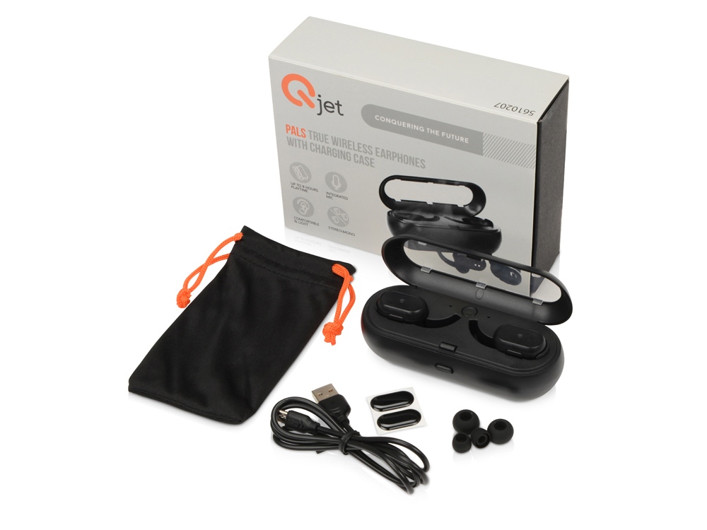 Беспроводные наушники "Pals" от Qjet - это современные технологии в компактной привлекательной форме. Наушники порадуют качественным объемным звучанием и легкой эргономичной формой, а благодаря зарядному кейсу суммарное время воспроизведения достигает 8 часов. Зарядный чехол-повербанк легко помещается в карман куртки, сумки или рюкзака. Поддерживают режим hands-free. Управление звонками и воспроизведением музыки осуществляется через многофункциональную кнопку на наушнике. Каждый из 2 наушников может быть декорирован любым изображением с помощью заливки смолой. В комплекте 2 наушника, зарядный кейс, набор сменных амбушюр, мешочек, зарядный кабель, подробная инструкция и 2 стикера-накладки на случай ,если заливка смолой не требуется. Основные характеристики: — Качественное звучание до 8 ч. — Легкие и комфортные наушники, портативный зарядный кейс. — Hands free, моно и стерео режимы. — Заливка смолой любого изображения на каждом наушнике.