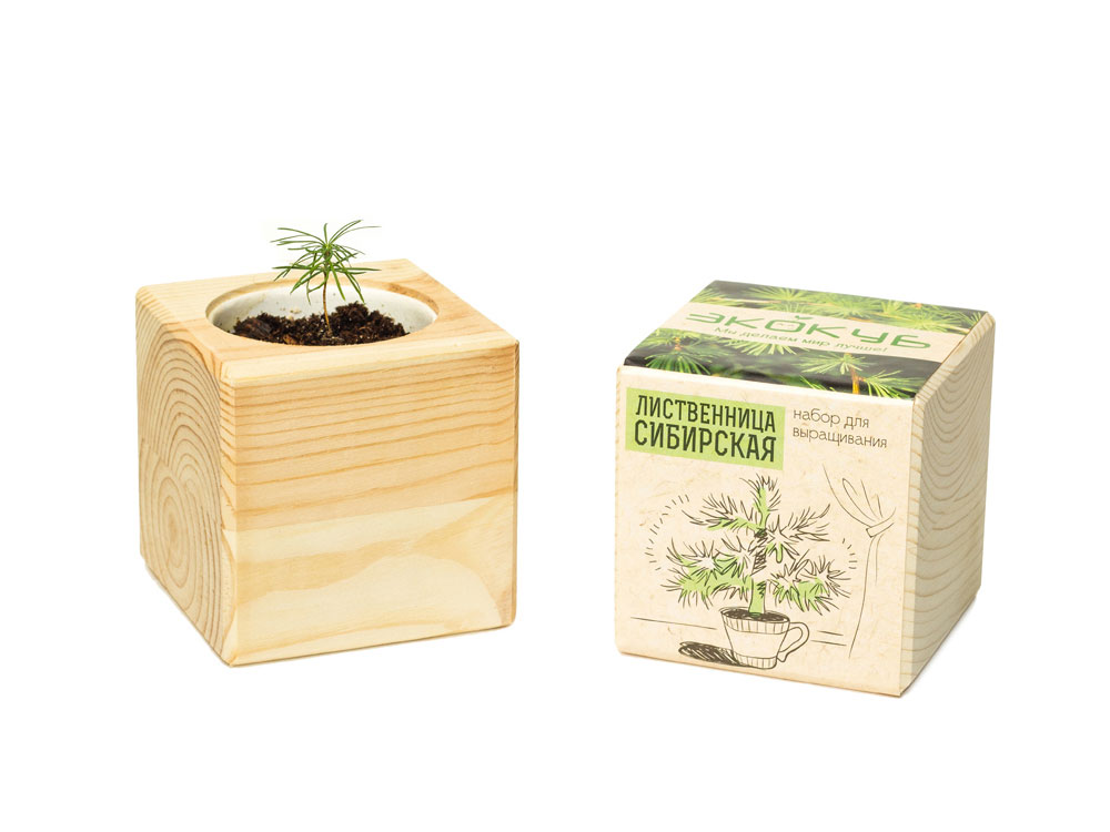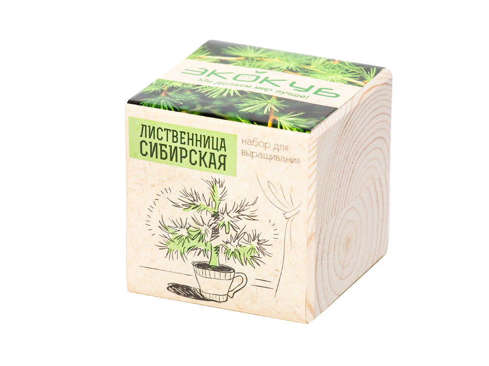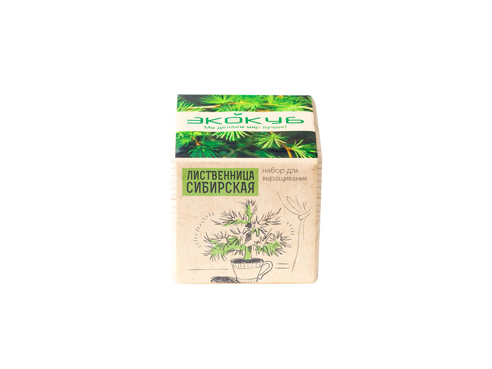 Экокуб – это современный набор для выращивания растения в домашних условиях. Вы получаете все необходимое от семян и грунта до подробной инструкции по уходу за сеянцем. Также экокуб станет отличным украшением вашего интерьера, ведь он сделан из натурального дерева и будет радовать вас ни один месяц. Сибирская лиственница – одно из наиболее удивительных растений, произрастающих только на территории России, а потому считается даже неофициальным символом духа, силы и мудрости страны. В отличие от остальных хвойных деревьев особенность лиственницы заключается в том, что ее хвоя представляет собой довольно мягкие иголки, которые дерево сбрасывает на зиму, чтобы вновь расцвести молодой зеленью, наполненной невообразимым коктейлем всевозможных полезных элементов с приходом весеннего тепла. В природе лиственница достигает в высоту 40 и даже 70 метров, комнатный вариант же не займет много места, эффектно украсив интерьер. При этом растение, обладающее мощной положительной энергетикой, особенно в утренние часы, что уже неоднократно доказано на практике, будет способствовать нормализации энергетических потоков в жилище, очищению воздуха от вирусов и вредоносных бактерий, общему оздоровлению. Декоративная лиственница отлично адаптируется к перепадам температурного режима, не требует обильного полива, непритязательна к освещению – разместить экокуб с деревцем можно на подоконнике или на полу, на балконе или в домашней оранжерее. По мере роста деревце можно пересадить в кадку побольше или в открытый грунт.
