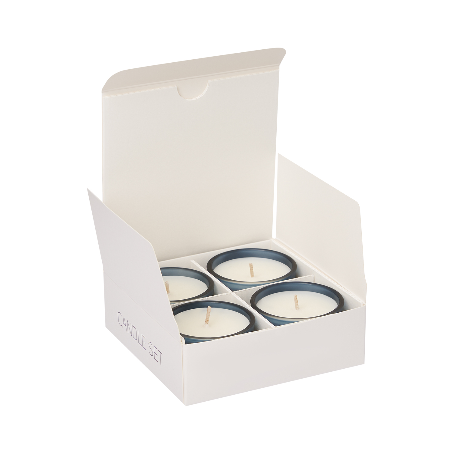 Состав набора: 4 свечи в стеклянных подсвечниках.
