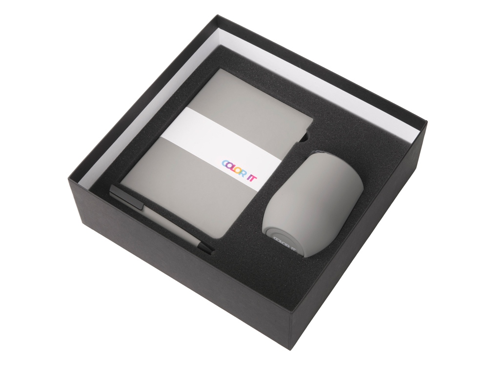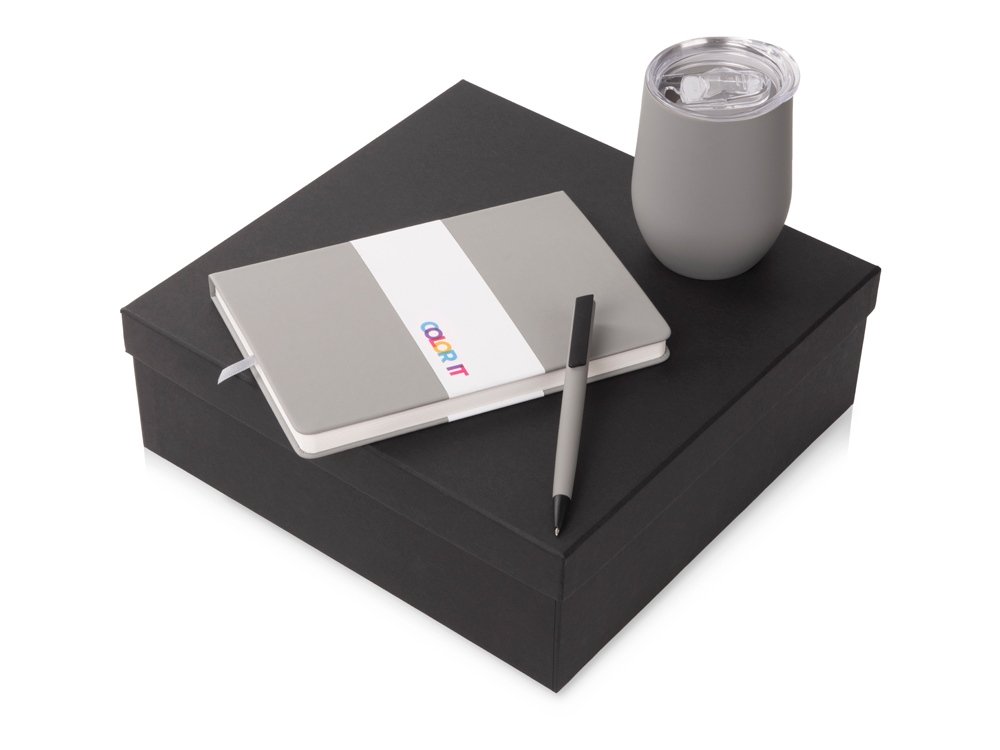 Color It — линейка, в которую входят хиты мерча в десяти самых популярных цветах. Еще никогда собрать сет под свой брендбук не было так просто. Широкая цветовая палитра серии позволяет создать идеальный набор в едином оттенке Pantone. Все товары имеют тактильно приятное покрытие софт-тач. Сет поставляется в коробке: мы продумали все, включая подарочную упаковку, за вас — осталось нанести лого! Термокружка оснащена крышкой-слайдером с силиконовым кольцом. Благодаря вакуумной изоляции и двойным стенкам, она сохраняет напитки горячими в течение 6 часов, а холодными - 12 часов. Бизнес-блокнот в твёрдой обложке имеет ляссе в тон обложки и среза. Бумажный блок разлинован в линейку и выполнен из бумаги, полученной из древесины из специальных восполняемых лесных ресурсов, имеет сертификат FSC. Тонкое письмо ручки обеспечивается пишущим узлом с толщиной письма 0,5 мм с нажимным механизмом. Ручка имеет сменный стержень, поэтому такой мерч прослужит дольше обычной одноразовой ручки, долго напоминая о вас клиентам. - объём термокружки: 370 мл; - блокнот А5 128 листов; - ручка с необычным слайдером; - подарочная упаковка из картона, оклеенного дизайнерской бумагой уже включена в набор.
