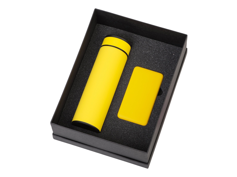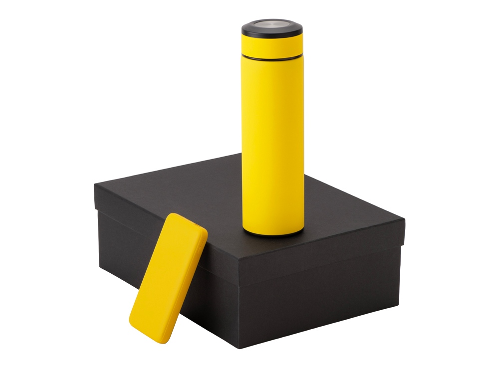 термос - нержавеющая cталь с покрытием софт-тач, внешний аккумулятор- пластик с покрытием софт-тач