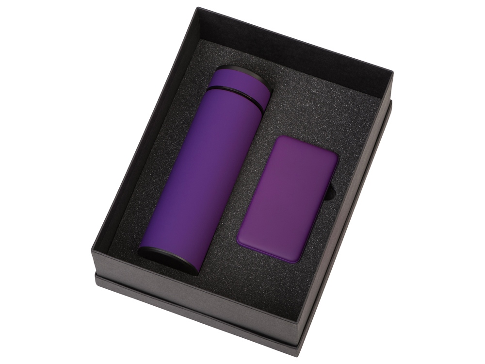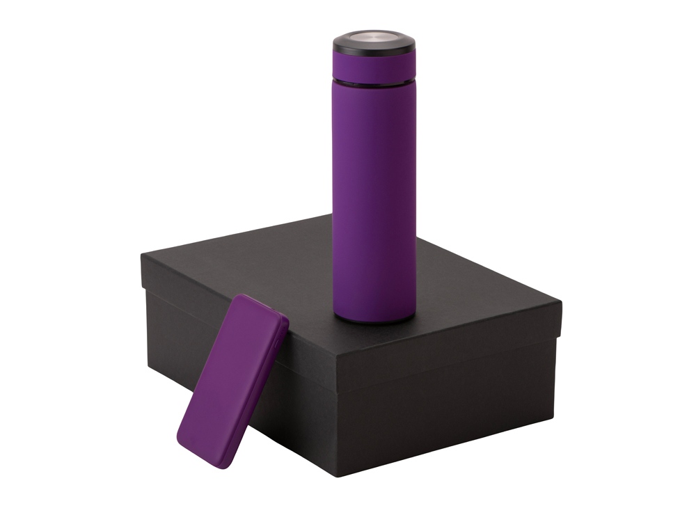 термос - нержавеющая cталь с покрытием софт-тач, внешний аккумулятор- пластик с покрытием софт-тач