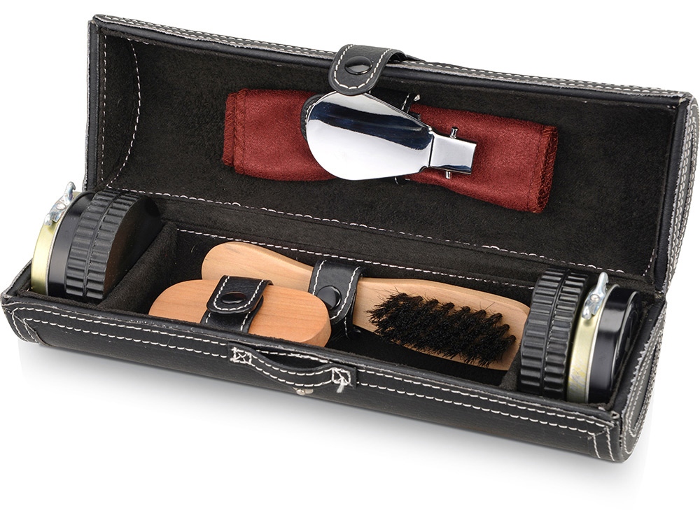 Подарочный набор для чистки обуви включает в себя 8 предметов, которые предназначены для поддержания чистоты вашей обуви. В комплект входят чистящие средства, так что не придется покупать их отдельно. Набор упакован в солидный футляр "под кожу", который удобно брать в дорогу, в командировку. Набор представлен также и в других цветах.