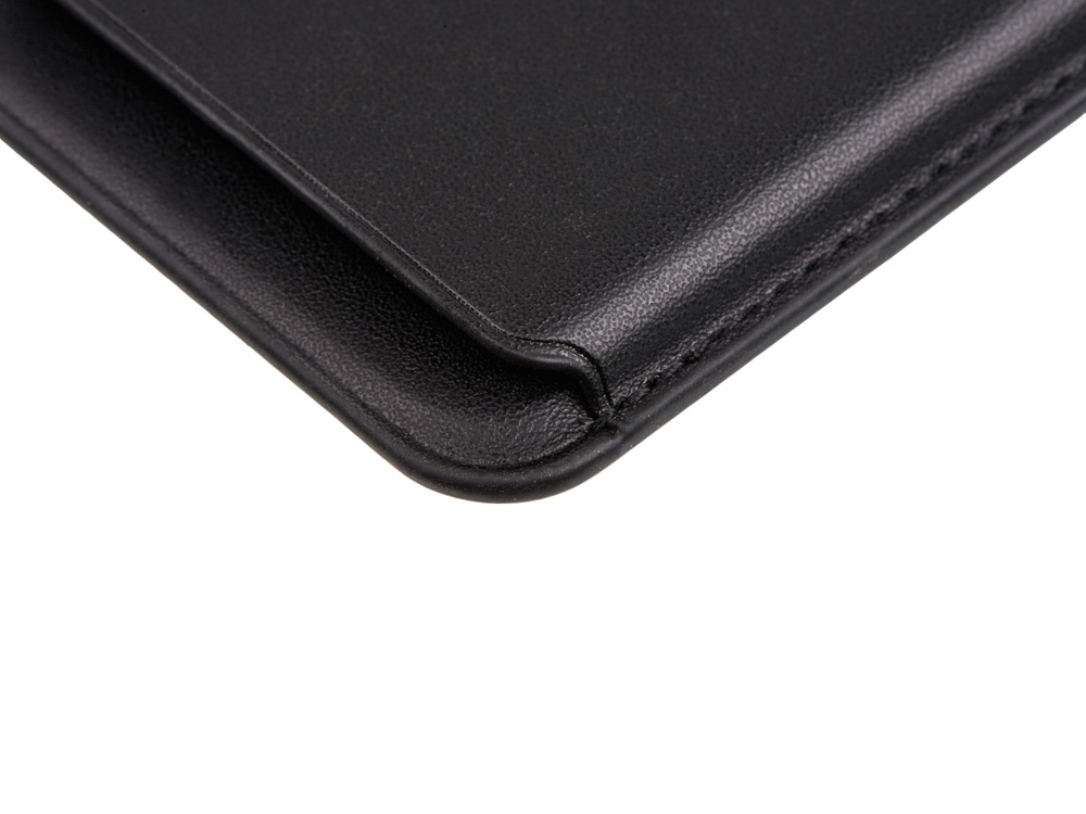 Картхолдер вмещает в себя 1-2 карты. На лицевой стороне изображен знак переработанного полиуретана, из которого сделан картхолдер, а с внутренней стороны имеется отверстие для быстрого доступа к картам. К смартфонам iPhone 12, 13, 14,15 картхолдер крепится за счёт встроенных магнитов у iPhone, а к другим смартфонам клеится металлическое кольцо (входит в комплект), а чехол магнитится к кольцу. При этом кольцо не блокирует возможность беспроводной зарядки и практически незаметно.