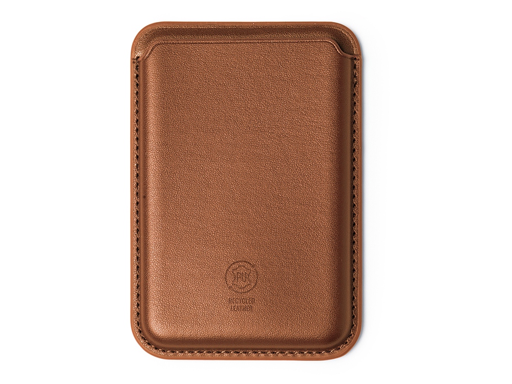 Картхолдер вмещает в себя 1-2 карты. На лицевой стороне изображен знак переработанного полиуретана, из которого сделан картхолдер, а с внутренней стороны имеется отверстие для быстрого доступа к картам. К смартфонам iPhone 12, 13, 14,15 картхолдер крепится за счёт встроенных магнитов у iPhone, а к другим смартфонам клеится металлическое кольцо (входит в комплект), а чехол магнитится к кольцу. При этом кольцо не блокирует возможность беспроводной зарядки и практически незаметно.