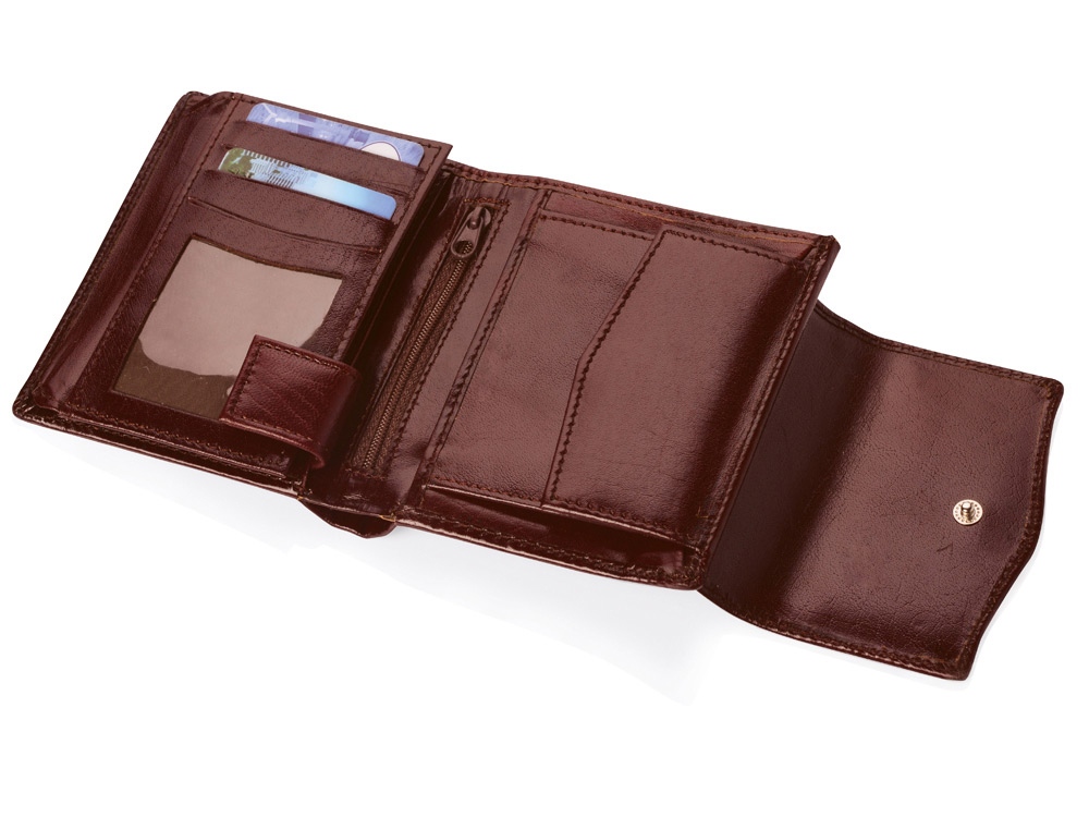 Портмоне выполнено из качественной, приятной на ощупь натуральной кожи. Внутри портмоне предусмотрены карманы для визитных и банковских карточек, а также отделение под мелочь.