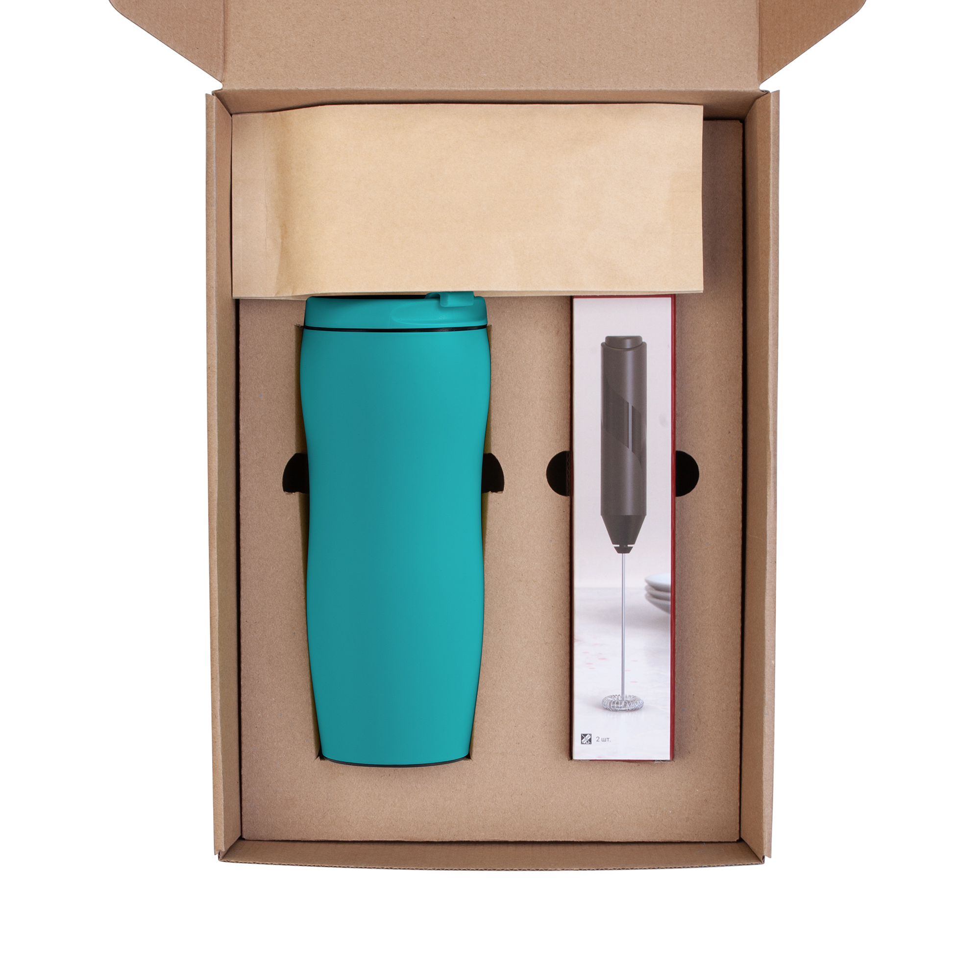 Набор, который станет приятным подарком для всех любителей кофе: зерновой кофе, термостакан и капучинатор для молока, чтобы ваш напиток получился с пенкой!