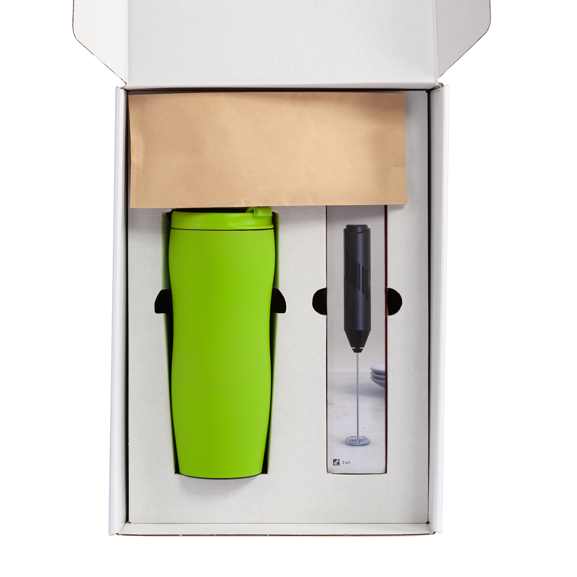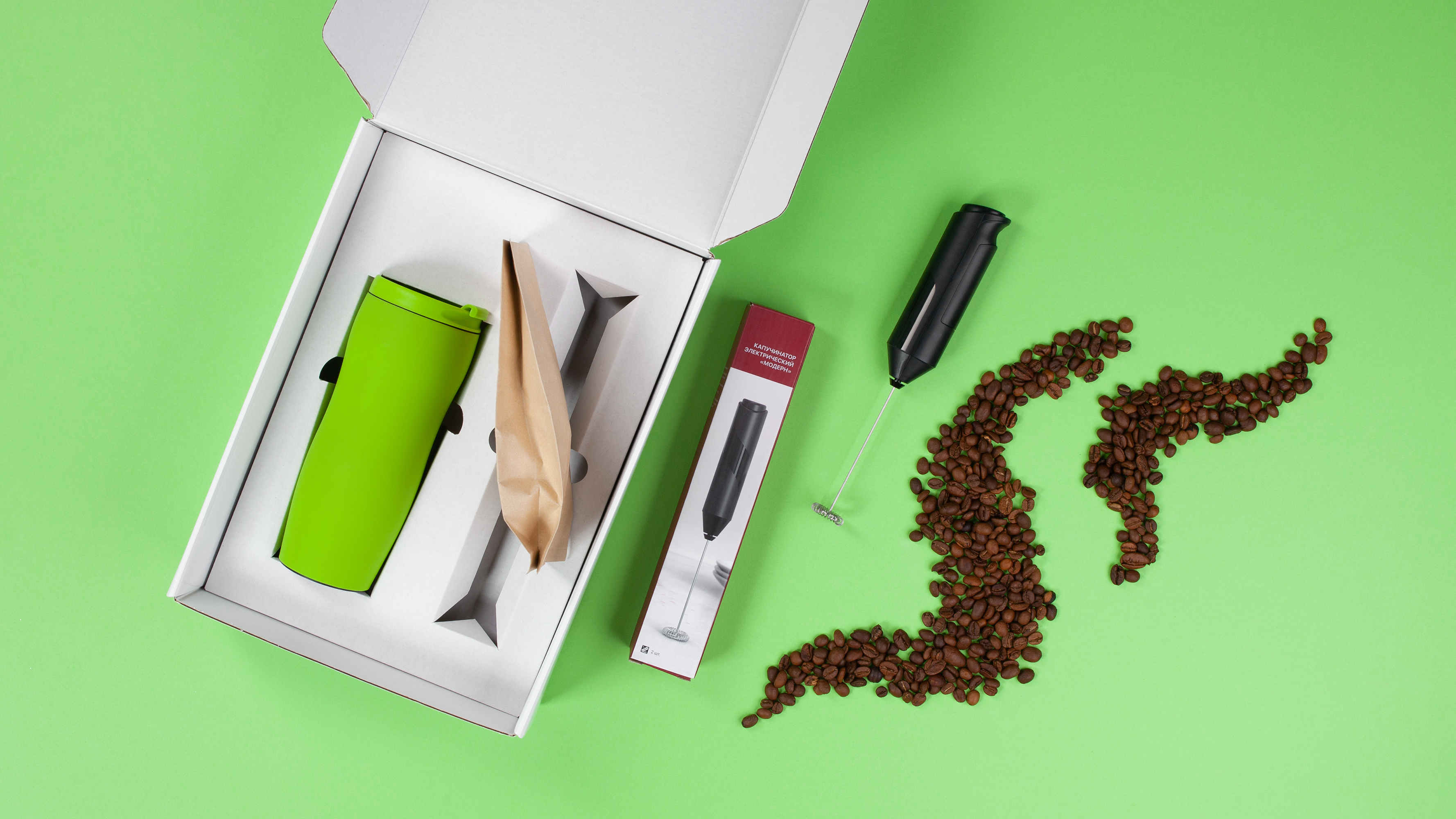 Набор, который станет приятным подарком для всех любителей кофе: зерновой кофе, термостакан и капучинатор для молока, чтобы ваш напиток получился с пенкой!