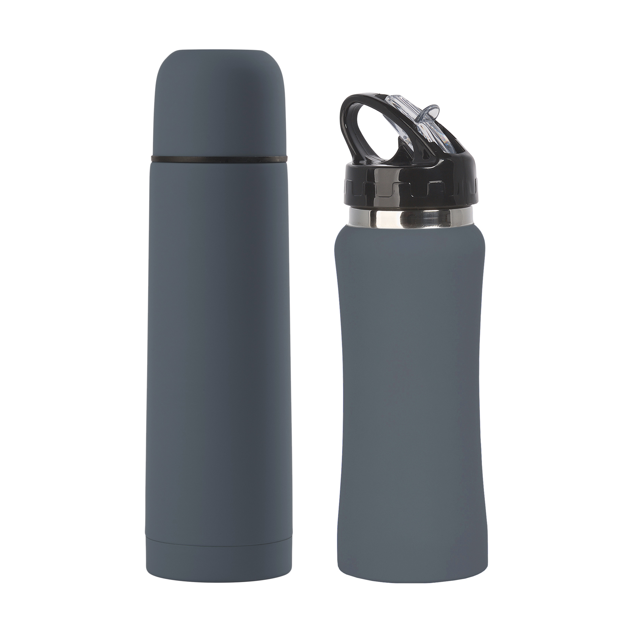 Подарочный набор "Активити" - универсальный подарок для тех, кто предпочитает энергично и активно проводить свое свободное время. Продукция в наборе имеет уникальное прорезиненное напыление с широкими возможностями персонализации по окружности встык. Набор "Активити", включающий термос "Крит" и спортивную бутылку "Индиана", незаменим в спортивном клубе, на природе, в путешествии и даже на прогулке.