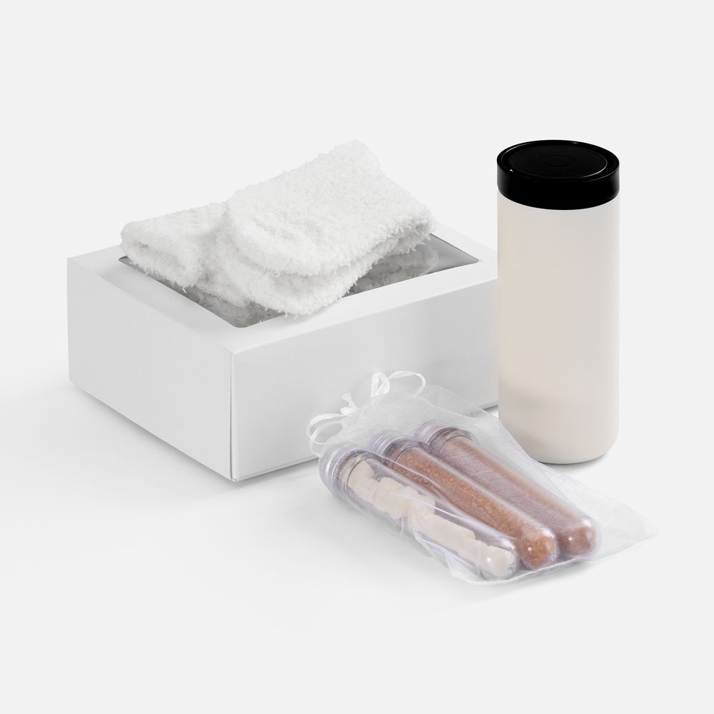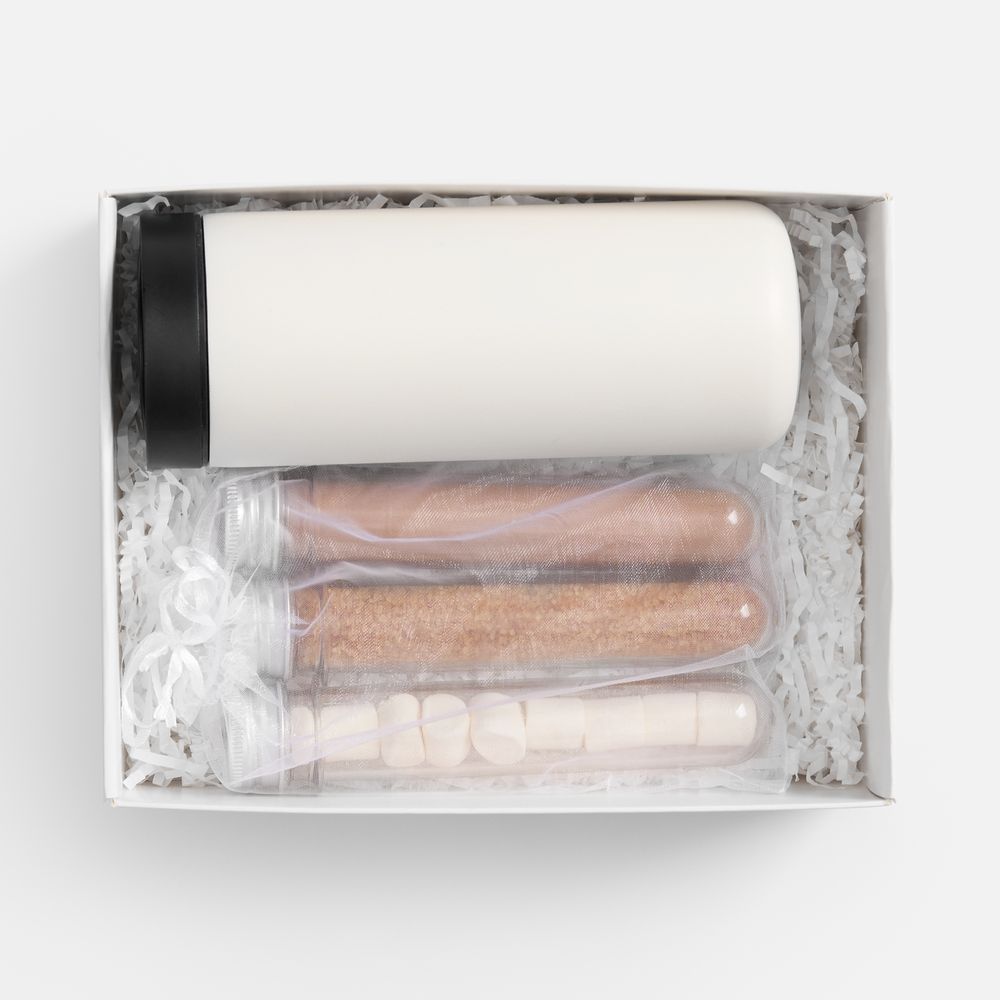 коробка - картон; носки - полиэстер 100%; пробирки - пластик; термостакан - нержавеющая сталь, пластик