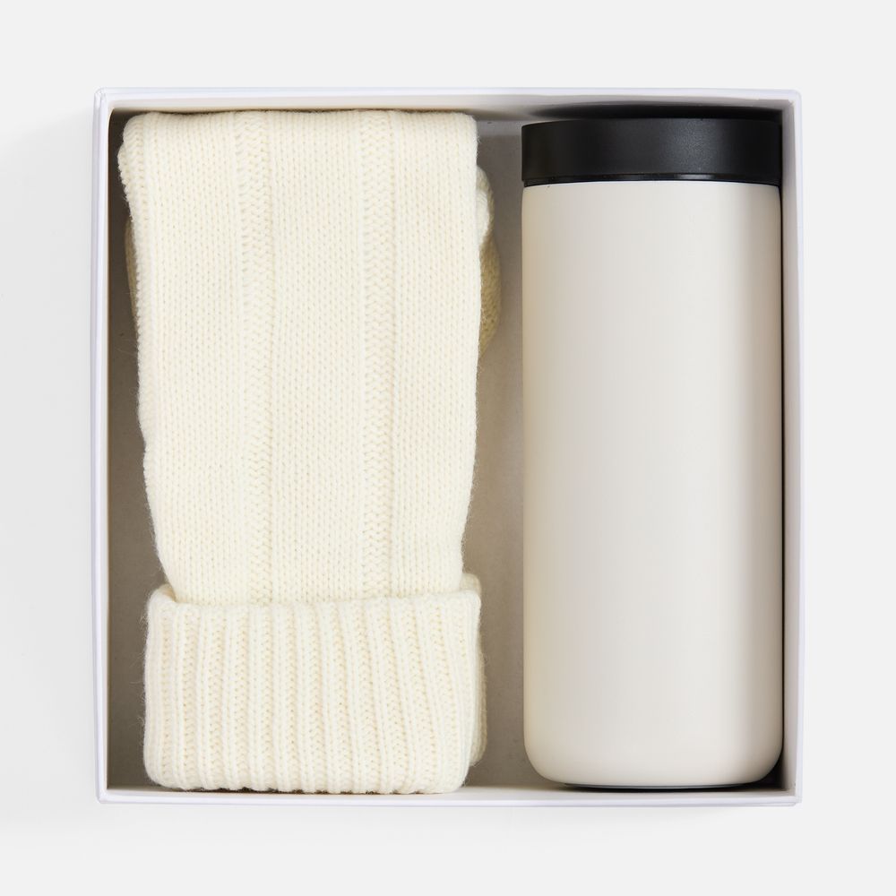 корпус - нержавеющая сталь, матовое покрытие; крышка - пластик, силикон; варежки - акрил 100%; подкладка - флис; коробка - переплетный картон, бумага Magic