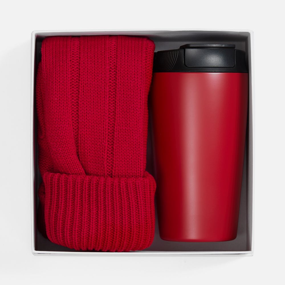 термостакан - нержавеющая сталь; крышка - пластик; варежки - акрил 100%; подкладка - флис; коробка - переплетный картон, бумага Magic
