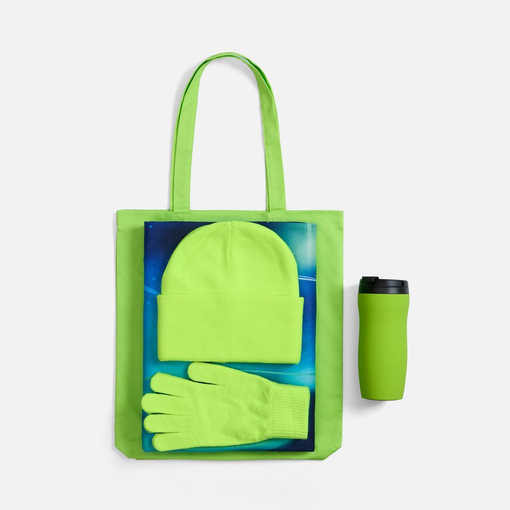 Набор «Ваше сиятельство» — это выражение заботы и нетривиальный комплимент в одном шопере! В нем тонко переплетены дух современного города и очарование северной сказки. Его элементы лаконичны и функциональны, а главная изюминка — живописный плед с изображением северного сияния — добавляет ноту настоящего чуда.