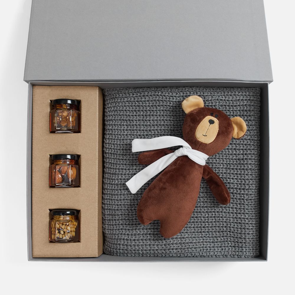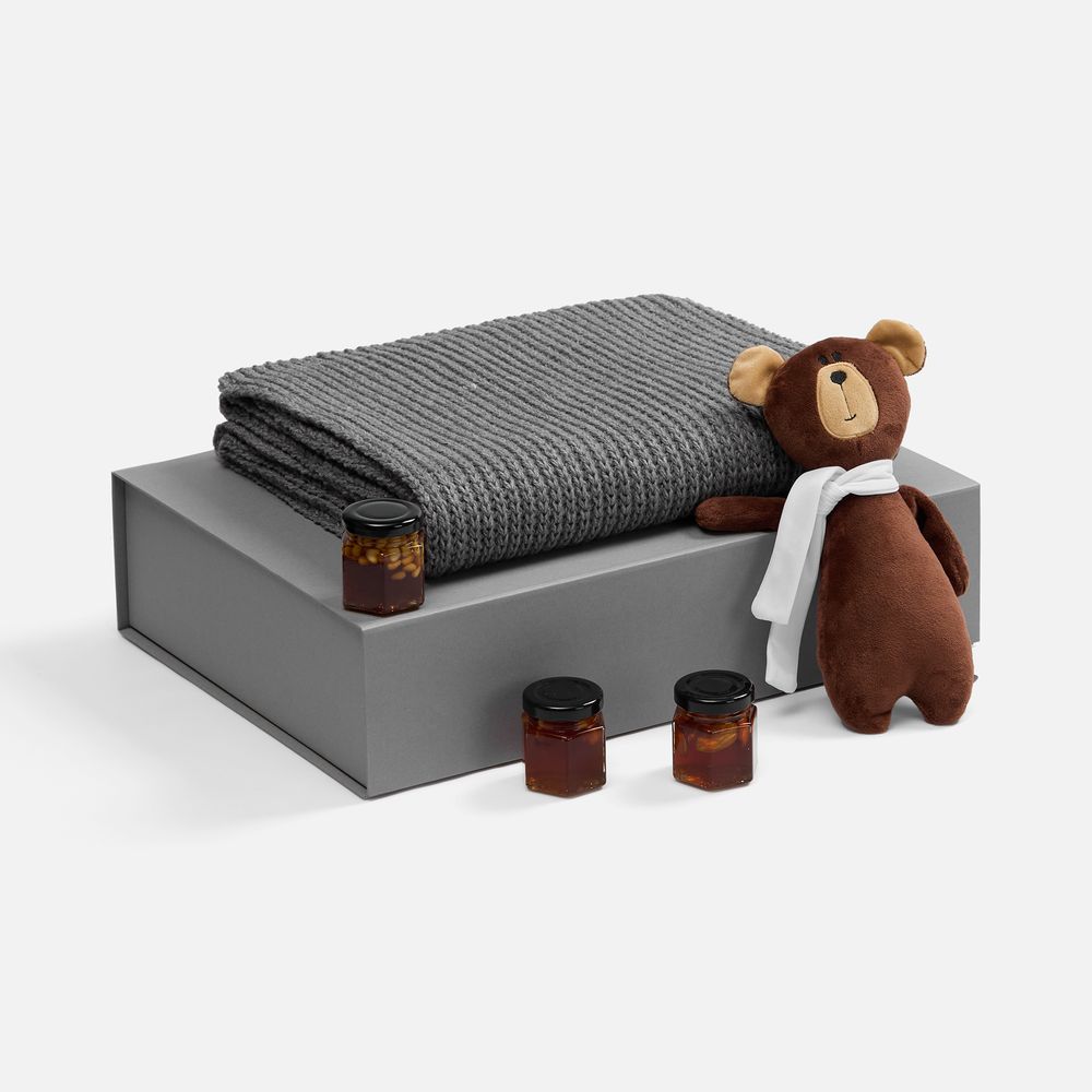 шарф - акрил 100%; игрушка - велюр; набивка, шарфик - полиэстер 100%; баночки для меда - стекло; коробка - переплетный картон, бумага Malmero