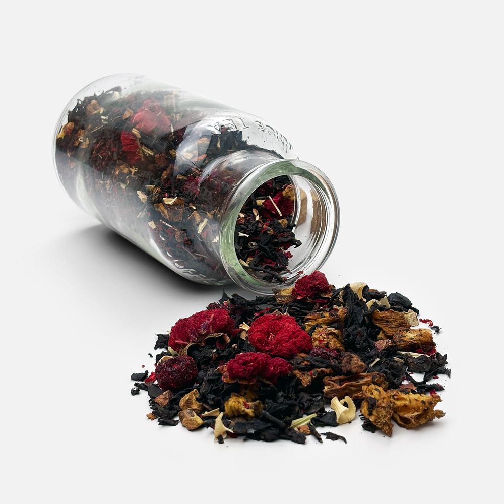 Чай «Сокочай», черный с соком ананаса с вишней, цветками и коркой граната и лемонграссом диаметр 7,8 см, высота 17 см