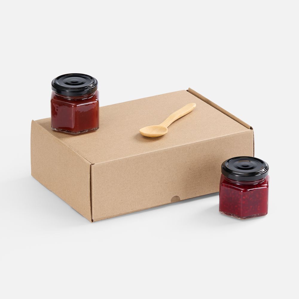 коробка - микрогофрокартон; баночки - стекло, жесть; ложка - бамбук