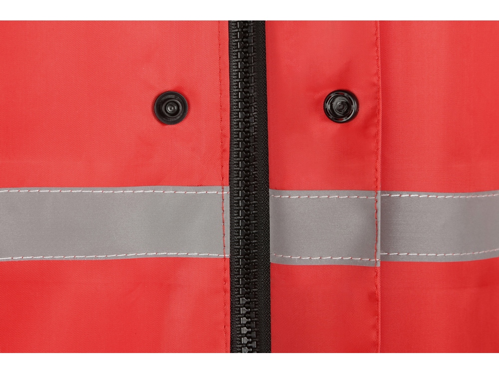 Длинный дождевик выполнен из полиэстера с водоотталкивающей пропиткой. Застегивается на молнию, поверх которой — планка на кнопках, что дополнительно защищает от ветра и промокания. Посадку капюшона можно регулировать при помощи шнурка, ширина рукава регулируется кнопкой. Светоотражающая тесьма на груди и спине делает человека в плаще заметным даже в темное время суток. Вместительные накладные карманы защищены сверху клапаном. Дополнительная проклейка швов дождевика обеспечивает большую степень водонепроницаемости. - водонепроницаемость обеспечивается водоотталкивающей пропиткой материала и дополнительной проклейкой швов - светоотражающие элементы делают человека заметным в темное время суток - вместительные накладные карманы