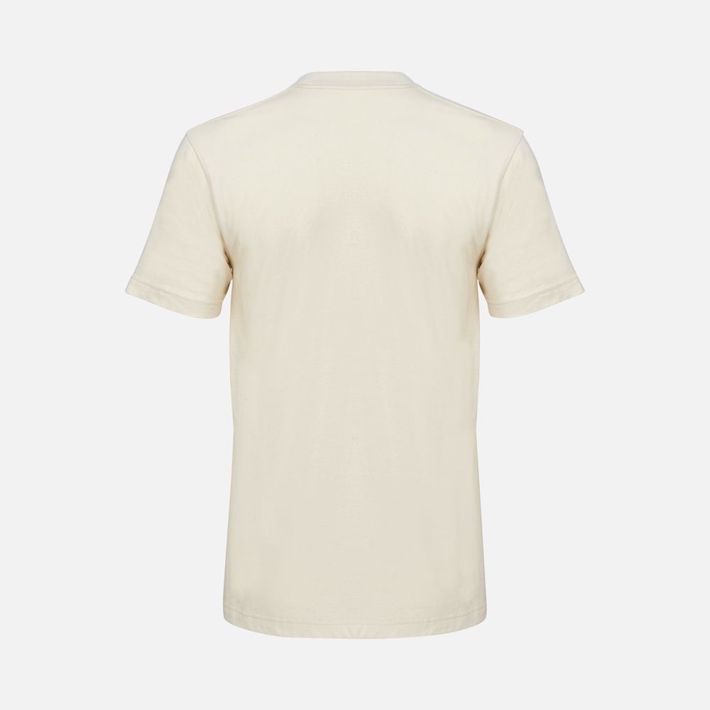 Ткань хорошо держит форму и не просвечивает, и при этом футболка остается футболка мягкой и приятной к телу. Особенности обработки волокна и конструкция с заметной высокой горловиной создает аутентичный образ с винтажной фактурой.