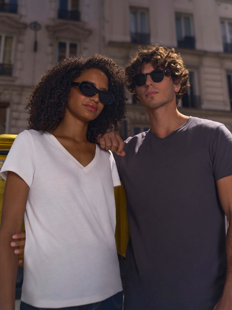 Женская футболка Regent с V-образным вырезом. Такой вырез снова актуален: он визуально удлиняет шею, подчеркивает линию ключиц и добавляет образу легкости.