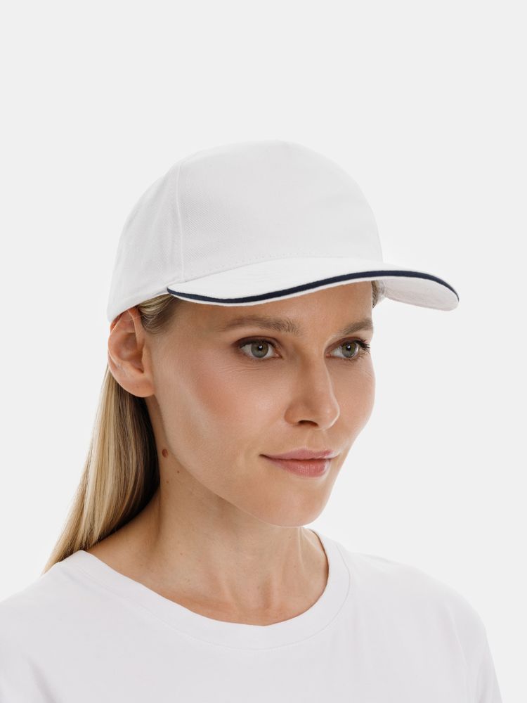 Бейсболка Classic 2.0, белая с темно-синим кантом 56–58
