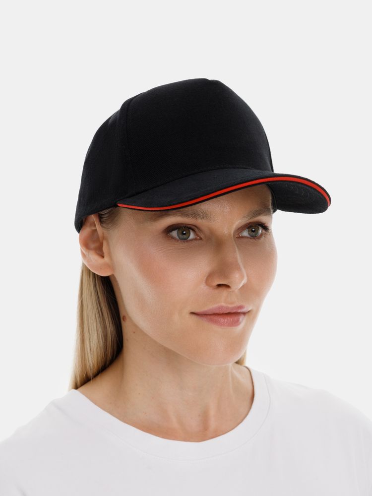 Бейсболка Classic 2.0, черная с красным кантом 56–58