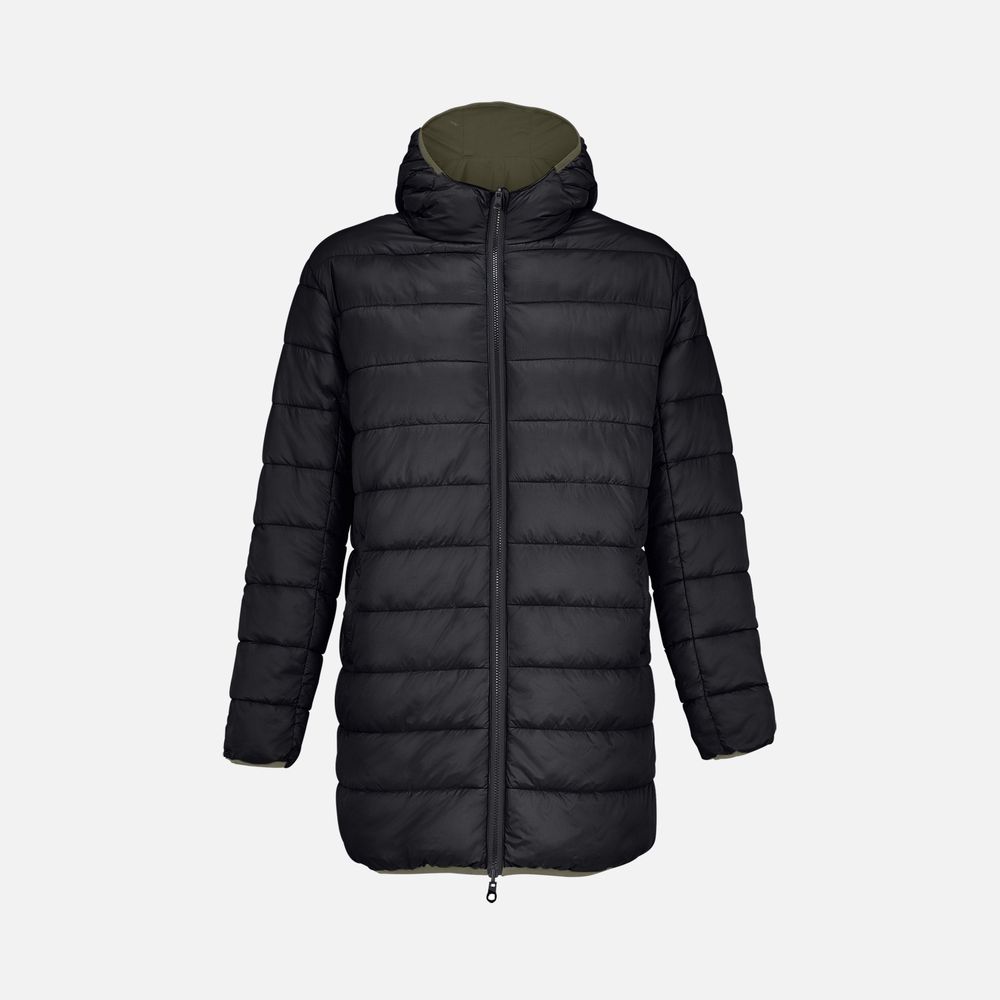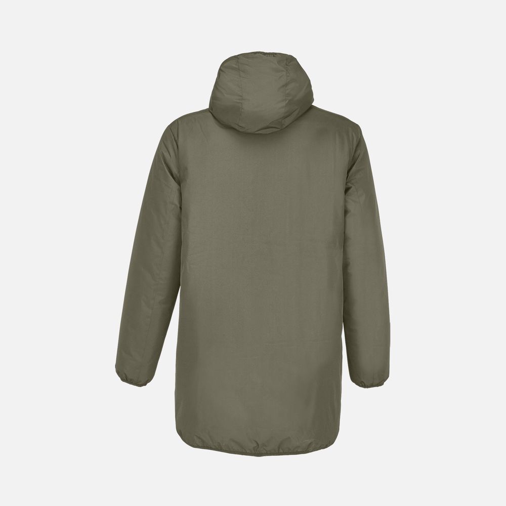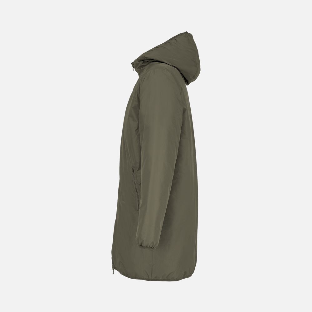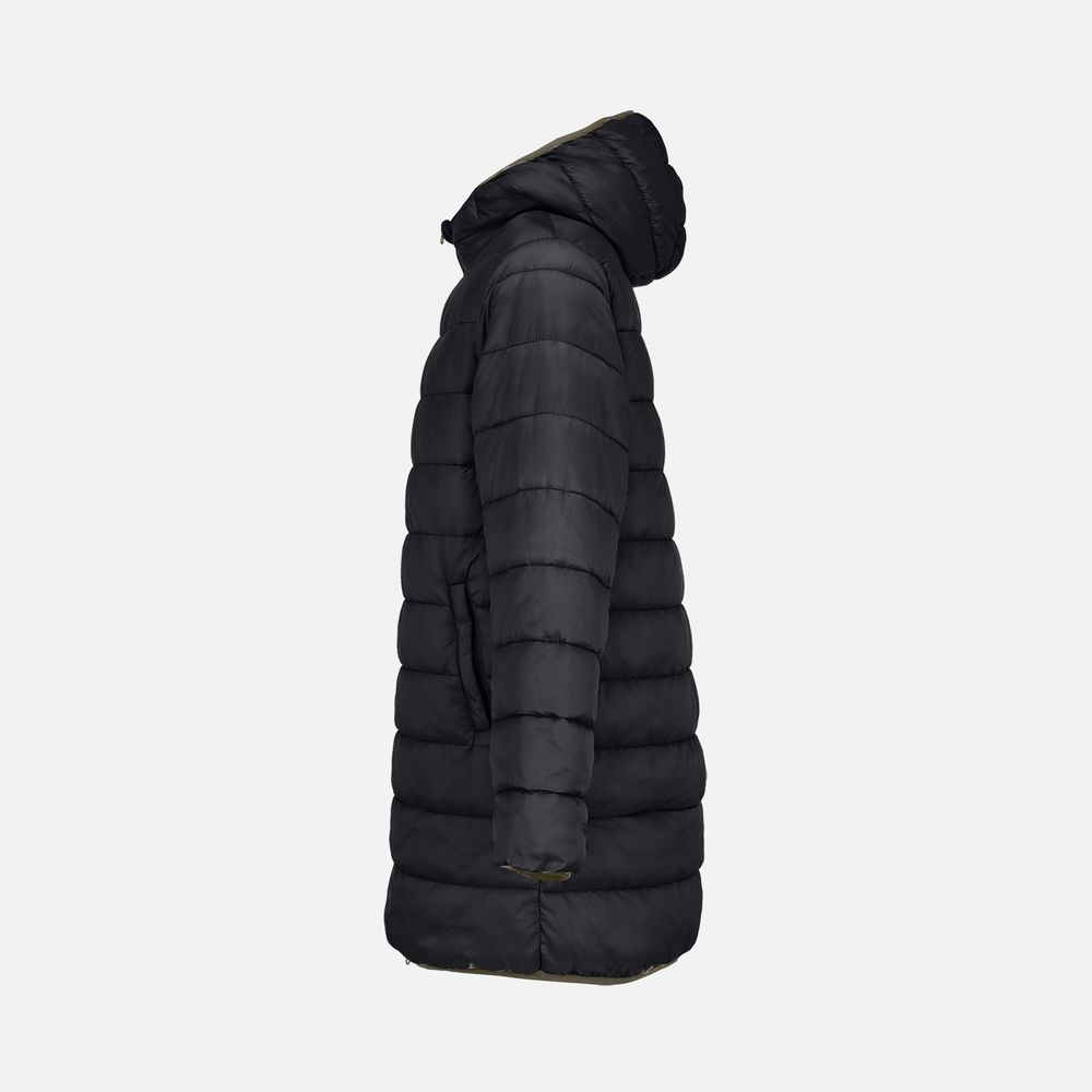 сторона 1 - переработанный полиэстер, 100%, плотность 80 г/м²; сторона 2 - нейлон, переработанный, плотность 380Т; утеплитель - переработанный полиэстер, 100%, искусственный пух