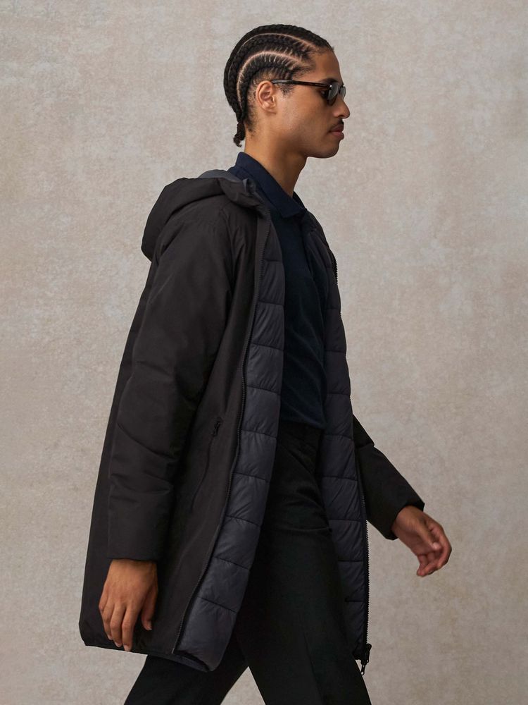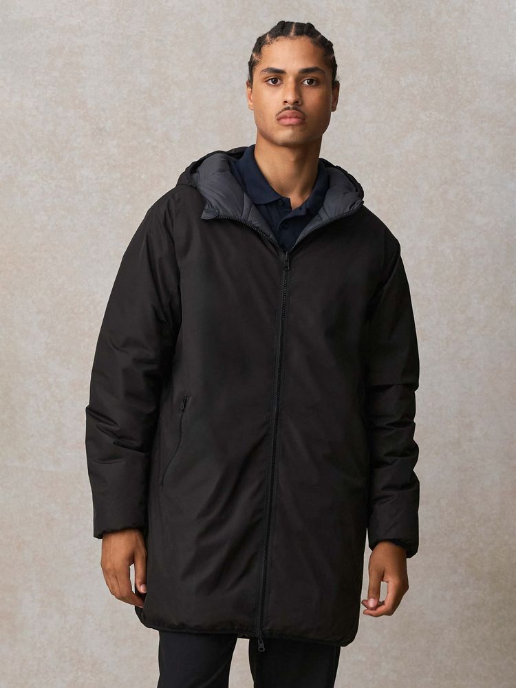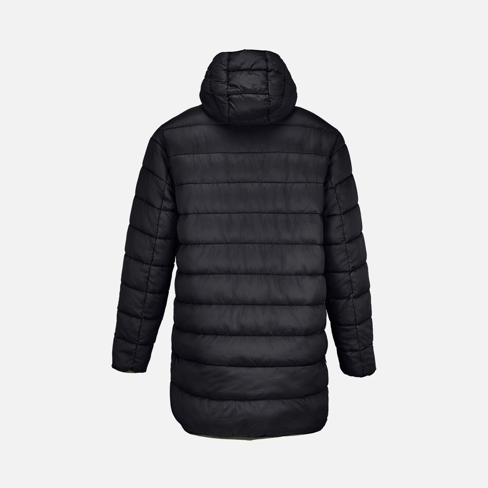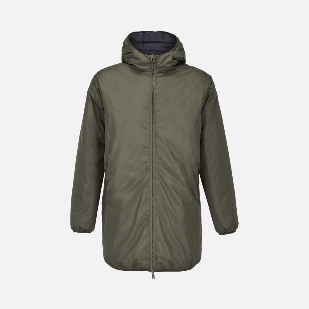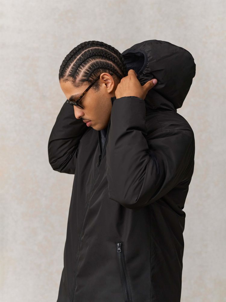 сторона 1 - переработанный полиэстер, 100%, плотность 80 г/м²; сторона 2 - нейлон, переработанный, плотность 380Т; утеплитель - переработанный полиэстер, 100%, искусственный пух