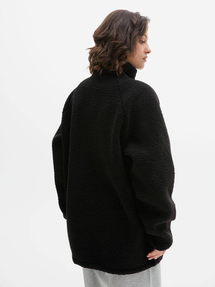 Свободный силуэт с рукавами-реглан обеспечивает удобную посадку и свободу движений, а воротник-стойка дополнительно защищает от ветра. Продуманная конструкция дополнена ветрозащитной планкой под молнией и эластичной лентой по краю изделия, что помогает лучше сохранять тепло.