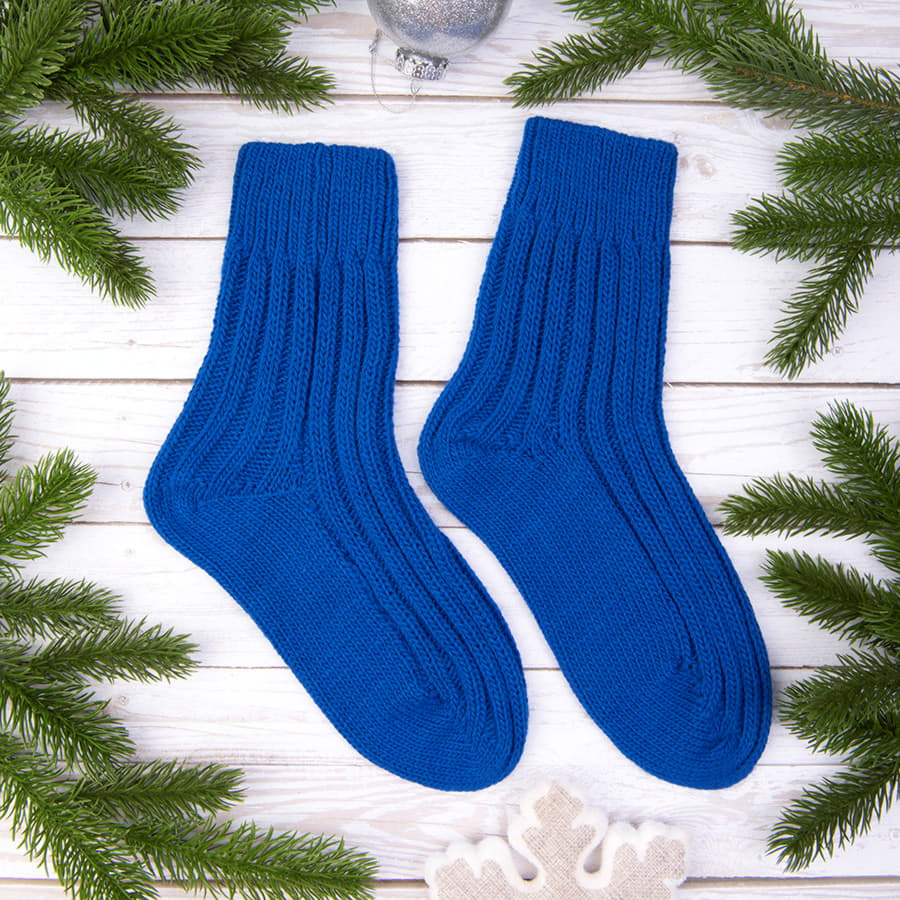 Носки вязаные НАСВЯЗИ© шерсть/акрил (ярко-синий) универсальный