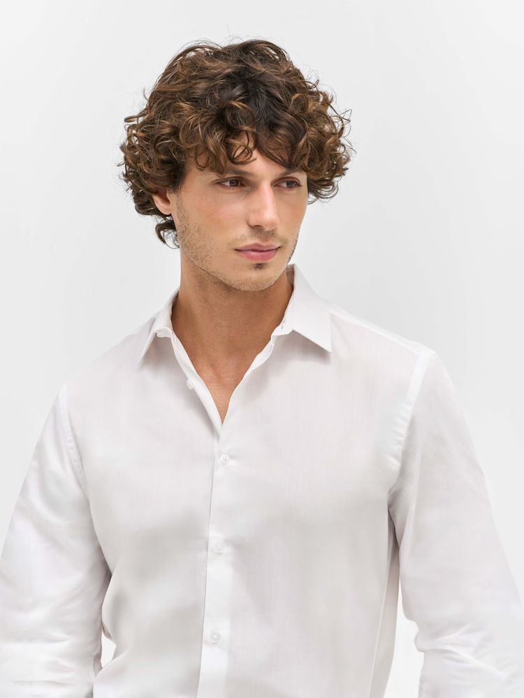 Классическая мужская рубашка прямого кроя. Выполнена из ткани поплин, благодаря чему она приятна на ощупь, хорошо держит форму и меньше мнется. Идеальный вариант для повседневного использования.