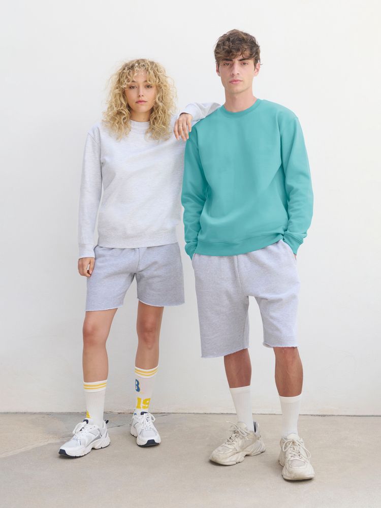 Свитшот унисекс из хлопка и переработанного полиэстера с круглым вырезом и втачным рукавом.